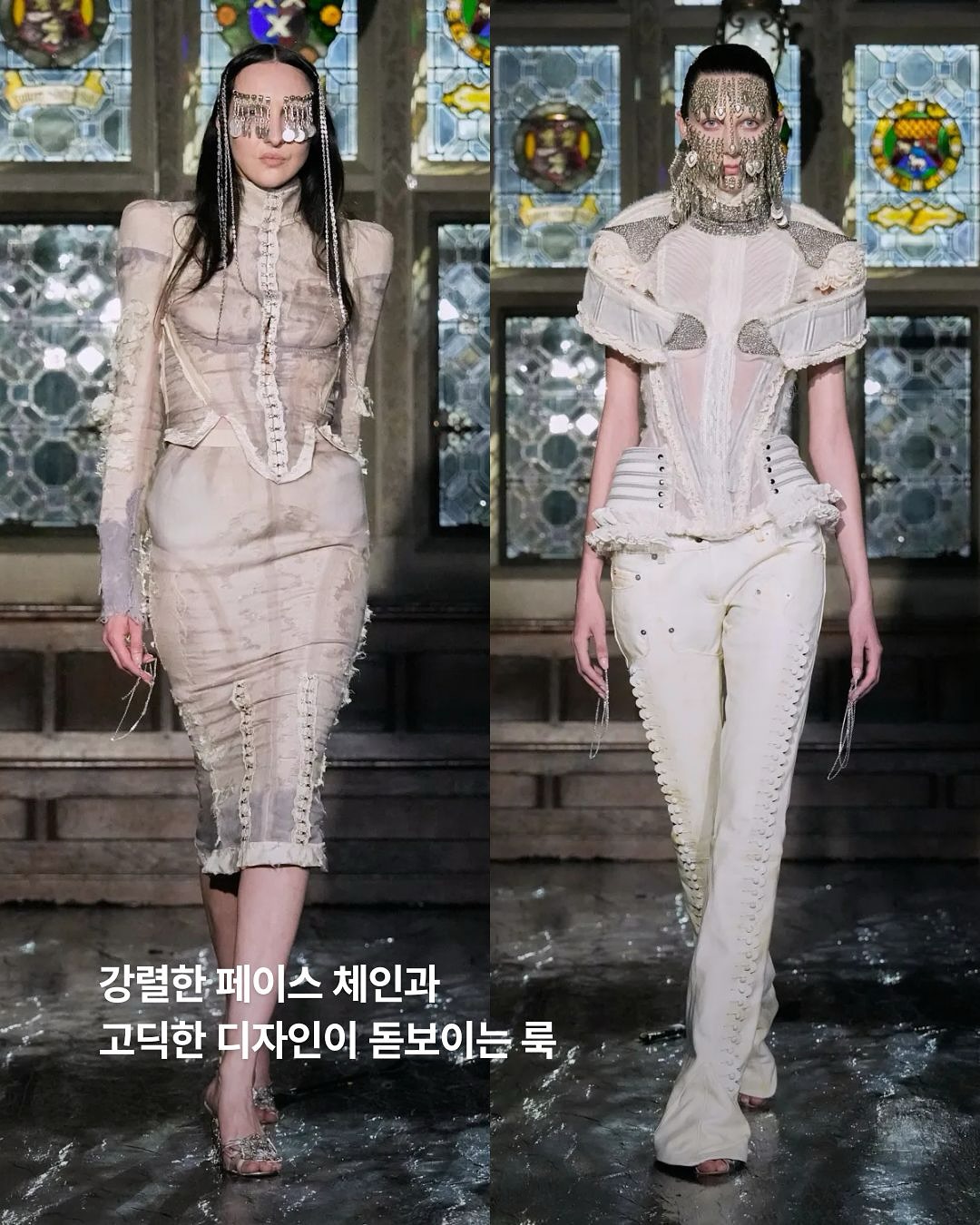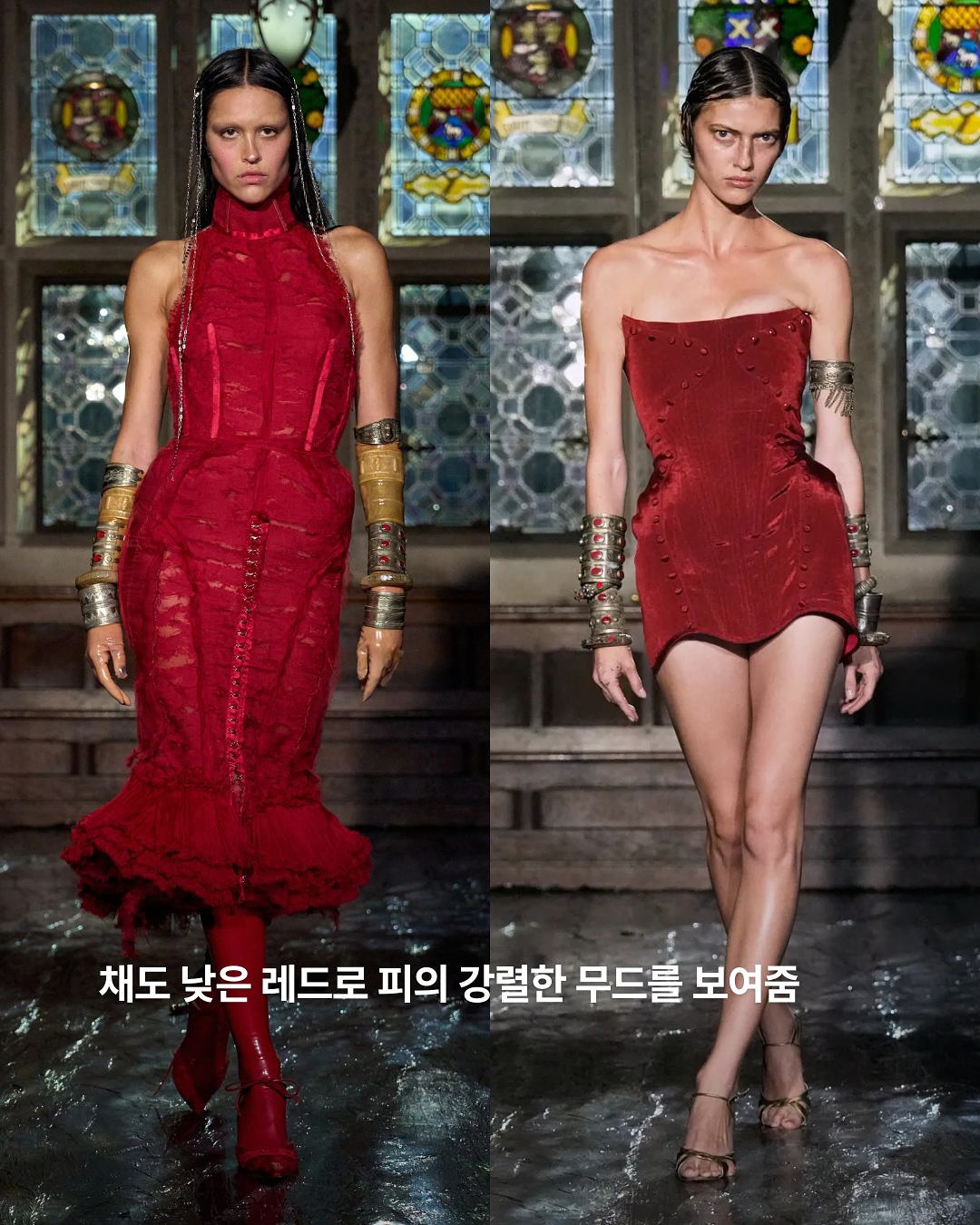 ▪️코르셋과 구조적인 슬리브, 레이어드 된 드라마틱 실루엣을 표현