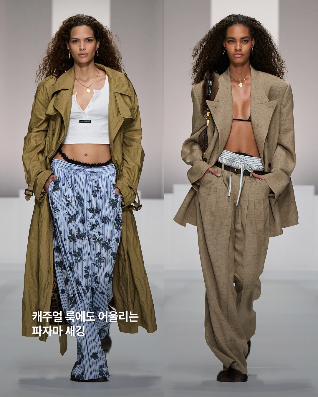 ▪️지난 여름 남성복 쇼에서의 파자마 컨셉에 이은 여성 파자마 라인업