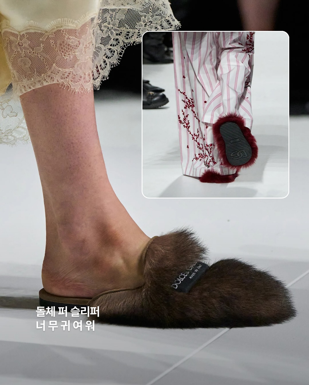 ▪️퍼 슬리퍼로 파자마 룩 완성