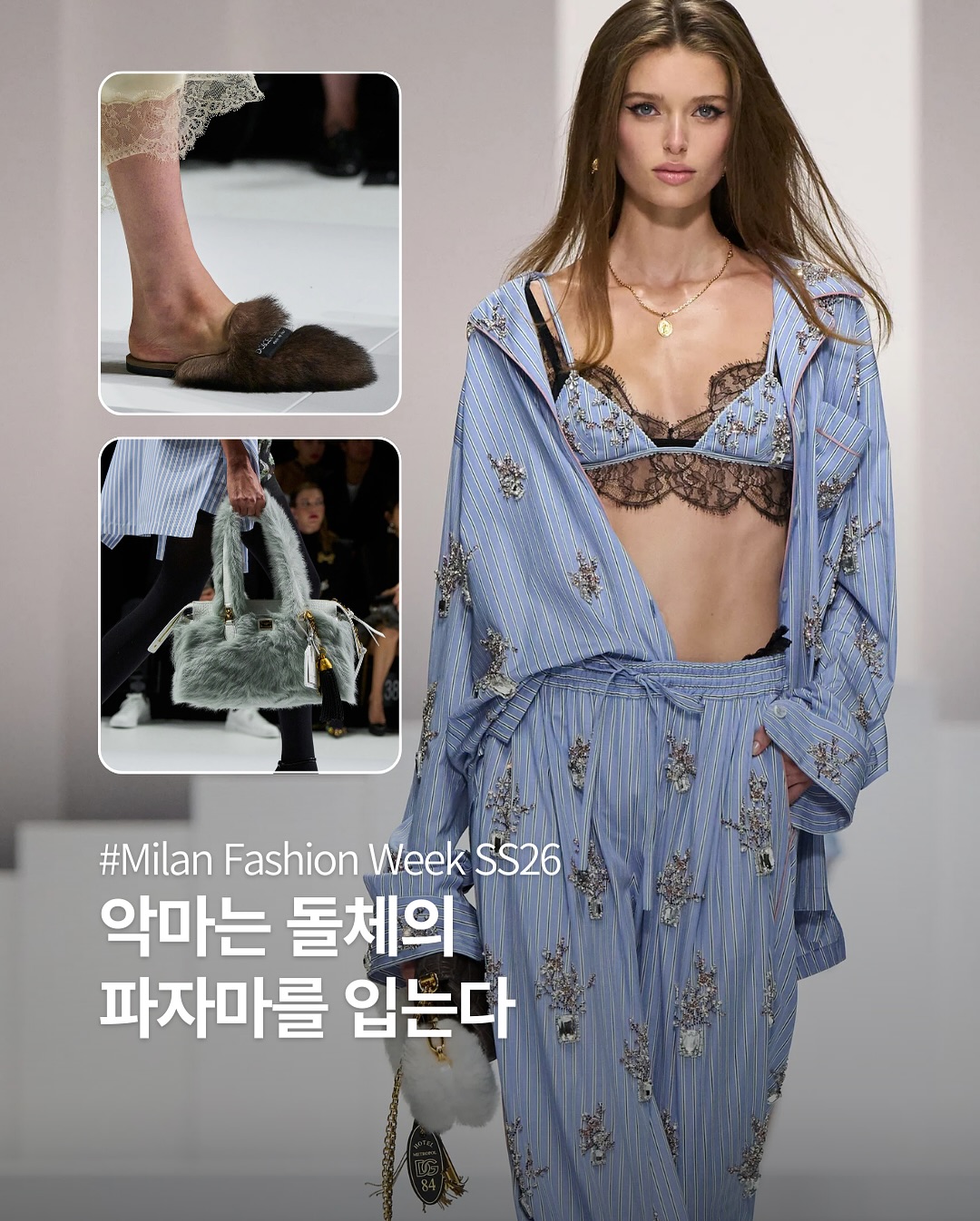 돌체 우먼이 집 앞에 나갈 때 파자마 입는 법 아르켜줄게🛌📍Dolce & Gabbana SS26악마는 돌체 파자마를 입는다?🖤메릴 스트립이 쇼에 참석하며 화제가 된돌체앤가바나 Spring 26 쇼!지난 여름 남성복 시즌의 파자마 컨셉을이번 여성복 컬렉션에도 가져와돌체우먼의 관능적인 파자마 룩을 보여줬습니다💤📌Dolce & Gabbana SS26 Collection 인스타그램 @dolcegabbana @milanfashionweek1️⃣ 할리우드급 깜짝 등장