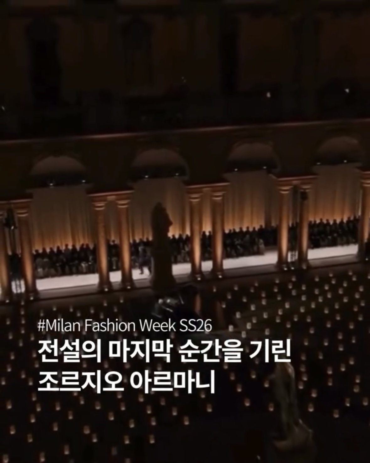 1️⃣ 컬렉션 의미 ▪️브레라 박물관에서 열린 쇼는 아르마니의 마지막 손길이 닿은 컬렉션으로 진행 ▪️모두가 검은 정장으로 자리하며, 추모의 등불 같은 장면 완성 ▪️피아니스트의 연주와 함께 쇼가 시작되며 디자이너를 향한 존경을 표현 ▪️한 시대를 마무리하는 마지막 쇼로서, 아르마니의 철학과 스타일적 일관성을 강조