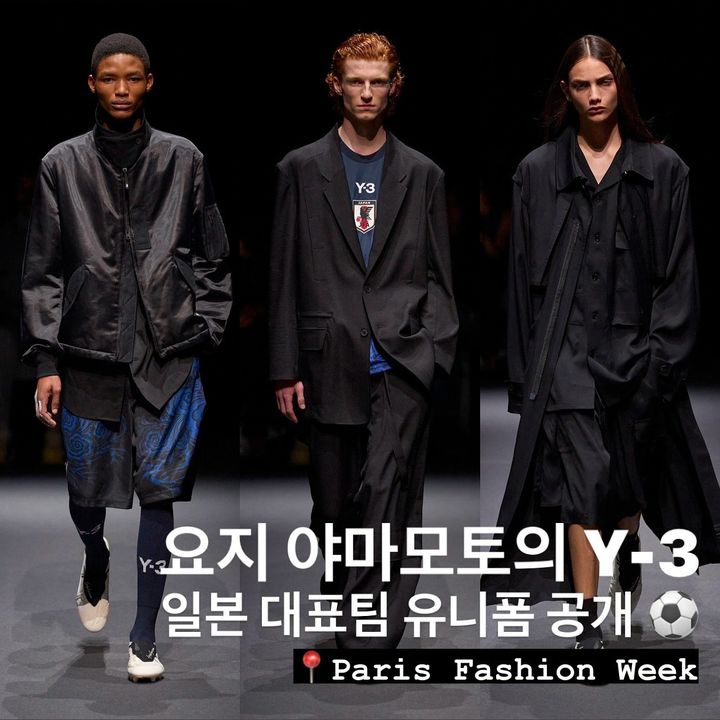 요지 야마모토와 아디다스의 콜라보 라인인 Y-3의 SS25 컬렉션 쇼에서 일본 축구 대표팀의 새로운 유니폼이 공개되었습니다.