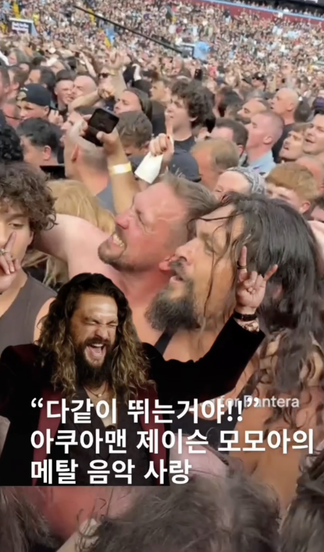 ▪️모모아는 이번 공연의 MC(사회자) 역할을 맡은 제이슨 모모아 ▪️Pantera의 “Cowboys From Hell” 초반부에서 관객석으로 뛰어들어 몸을 흔들며 서클핏을 이끌었음 ▪️그는 모자를 벗고 머리 땋기를 풀어헤친 상태로 바리케이드를 넘어 관객에게 합류, 열정적인 헤드뱅잉과 함께 분위기를 후끈하게 달구기도 함 ▪️관객들은 그를 들고 다시 무대 가까이로 밀어 보냈고, 일부 팬들은 “이게 인생 최고의 콘서트 경험이었다”며 큰 감동을 표현