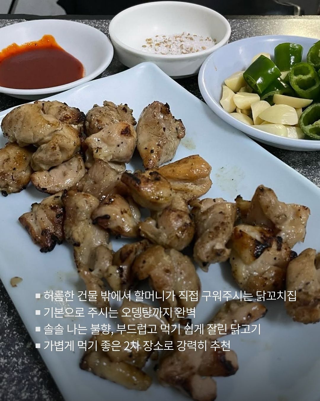 ▪️허름한 건물 밖에서 할머니가 직접 구워주시는 닭꼬치집