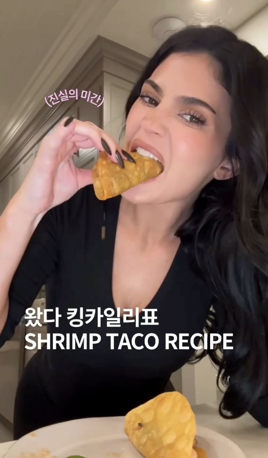 얘들아, 기다렸지?킹카일리가 말아주는 새우 타코 레시피 👑주말에 뭐 먹을지 고민하는 껄들을 위해5년 만에 만드는 카일리 표 타코 레시피 낋여왔습니다 👩🏻🍳재료 소개부터 꿍실타임까지볼 게 풍부한 카일리의 요리교실오늘 메뉴는 새우 타코로 정했습니다 😋🌮새우 타코 만드는 법1️⃣ 신선한 재료 준비하기▪️새우, 고수, 토마토, 양파, 토르티야, 시즈닝, 라임, 과카몰리, 올리브오일2️⃣ 재료를 깍둑썰기로 썰어하기3️⃣ 올리브오일에 손질한 재료 넣고 시즈닝 추가해 볶기4️⃣ 토르티야를 오일에 바삭하게 튀기기5️⃣ 토리티야에 재료를 넣은 뒤 과카몰리와 라임 추가하기#카일리제너 #kyliejenner🎥 영상 출처 카일리 제너(@kyliejenner)