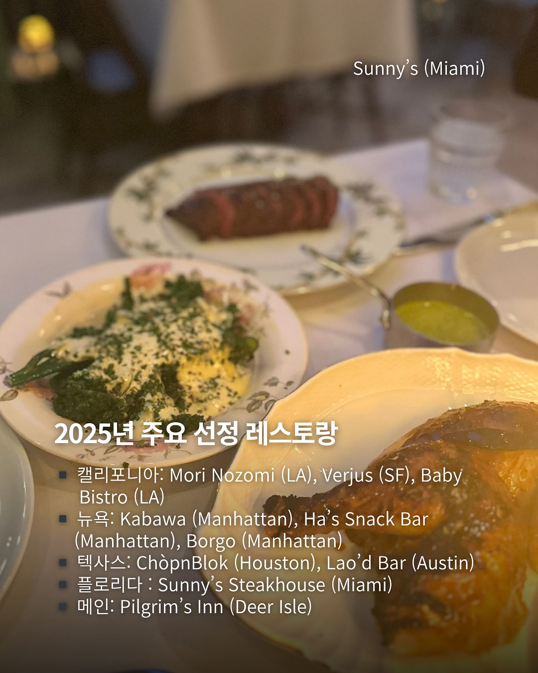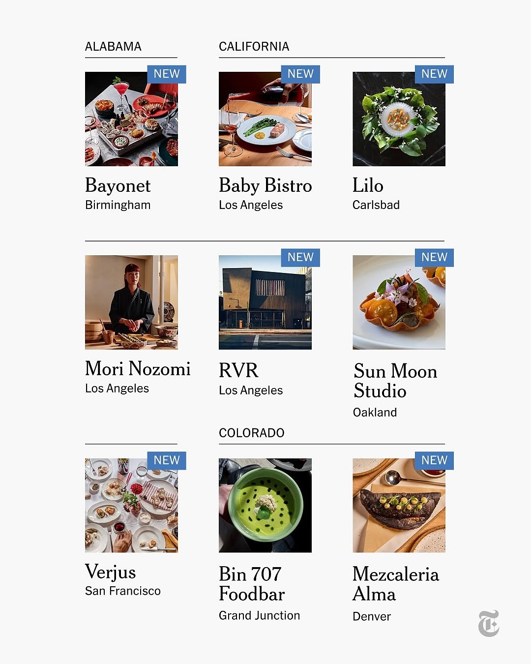 ▪️캘리포니아: Mori Nozomi (LA), Verjus (SF), Baby Bistro (LA)