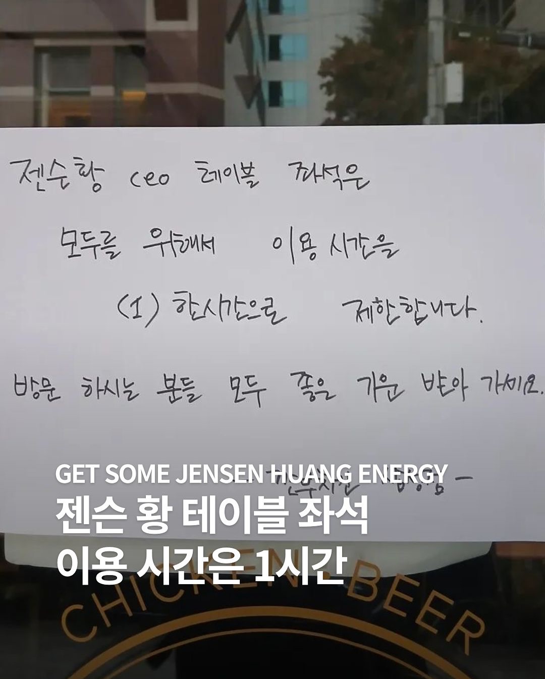 해당 안내문에는 젠슨 황이 앉았던 테이블은