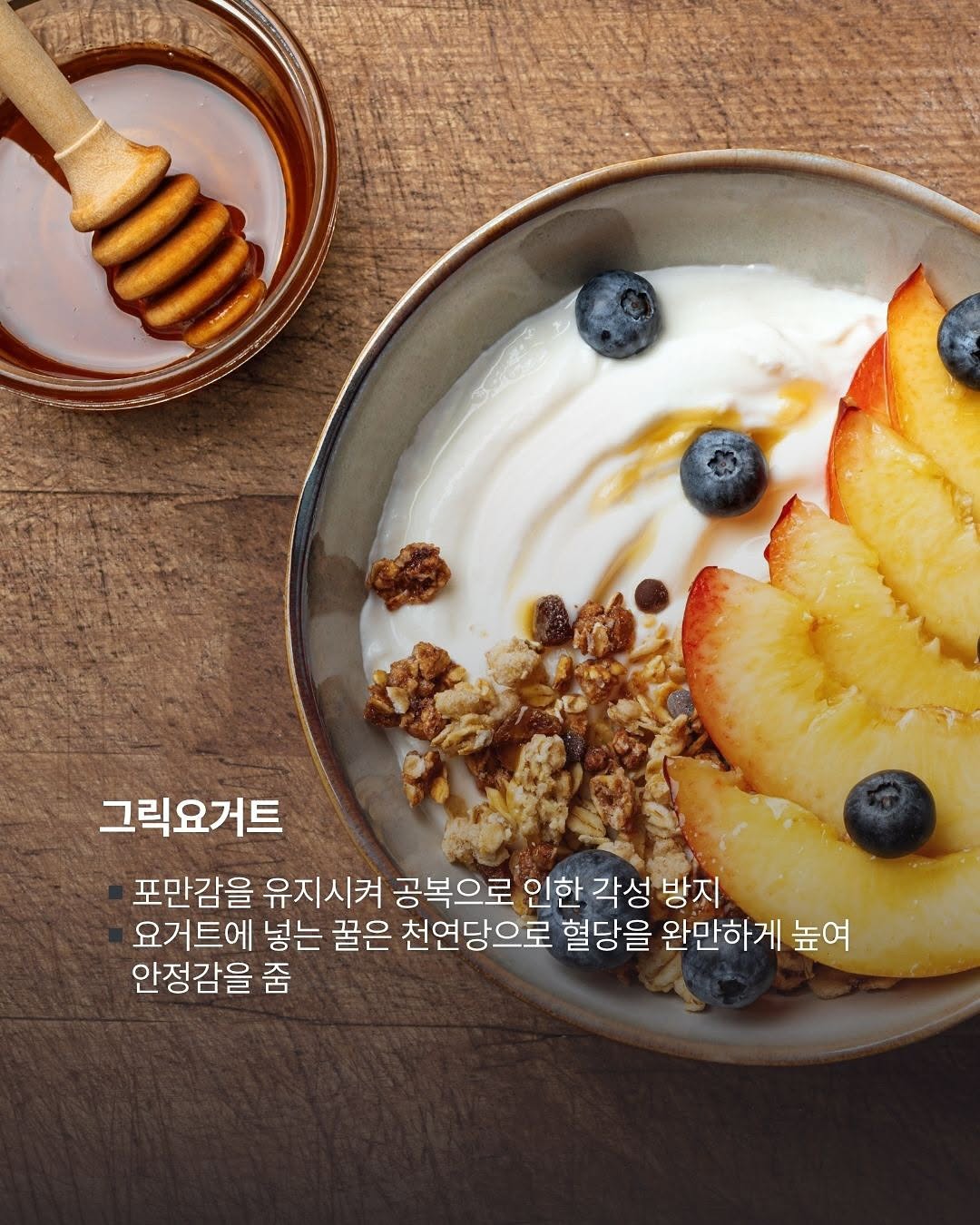 ▪️요거트에 넣는 꿀은 천연당으로 혈당을 완만하게 높여 안정감을 줌