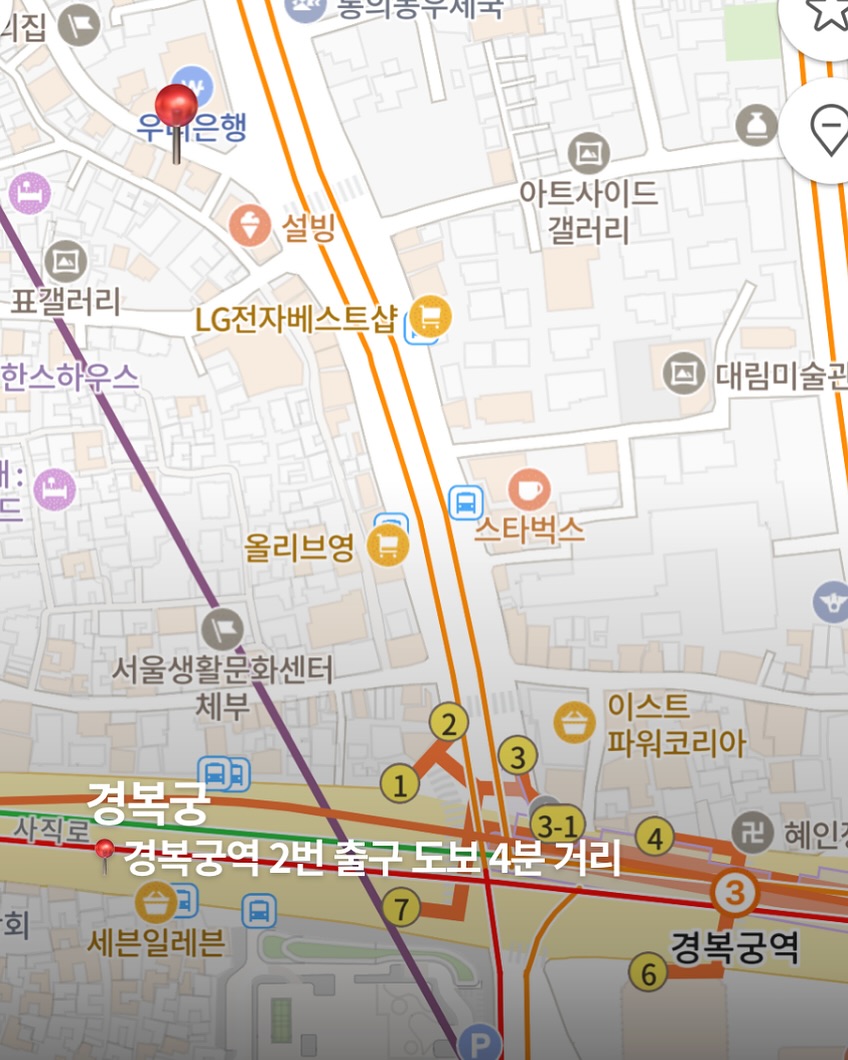 ▪️경복궁(자연의길): 경복궁역 2번 출구 도보 4분 거리