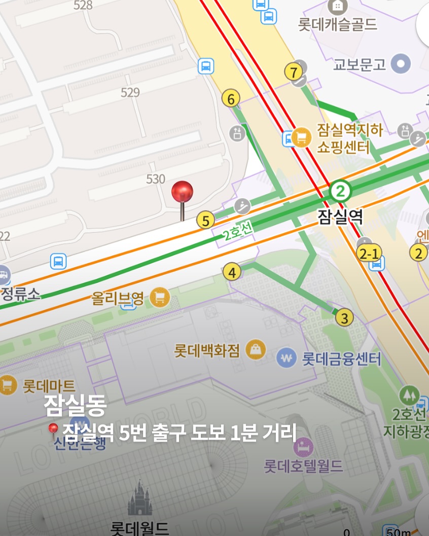 ▪️잠실동: 잠실역 5번 출구 도보 1분 거리