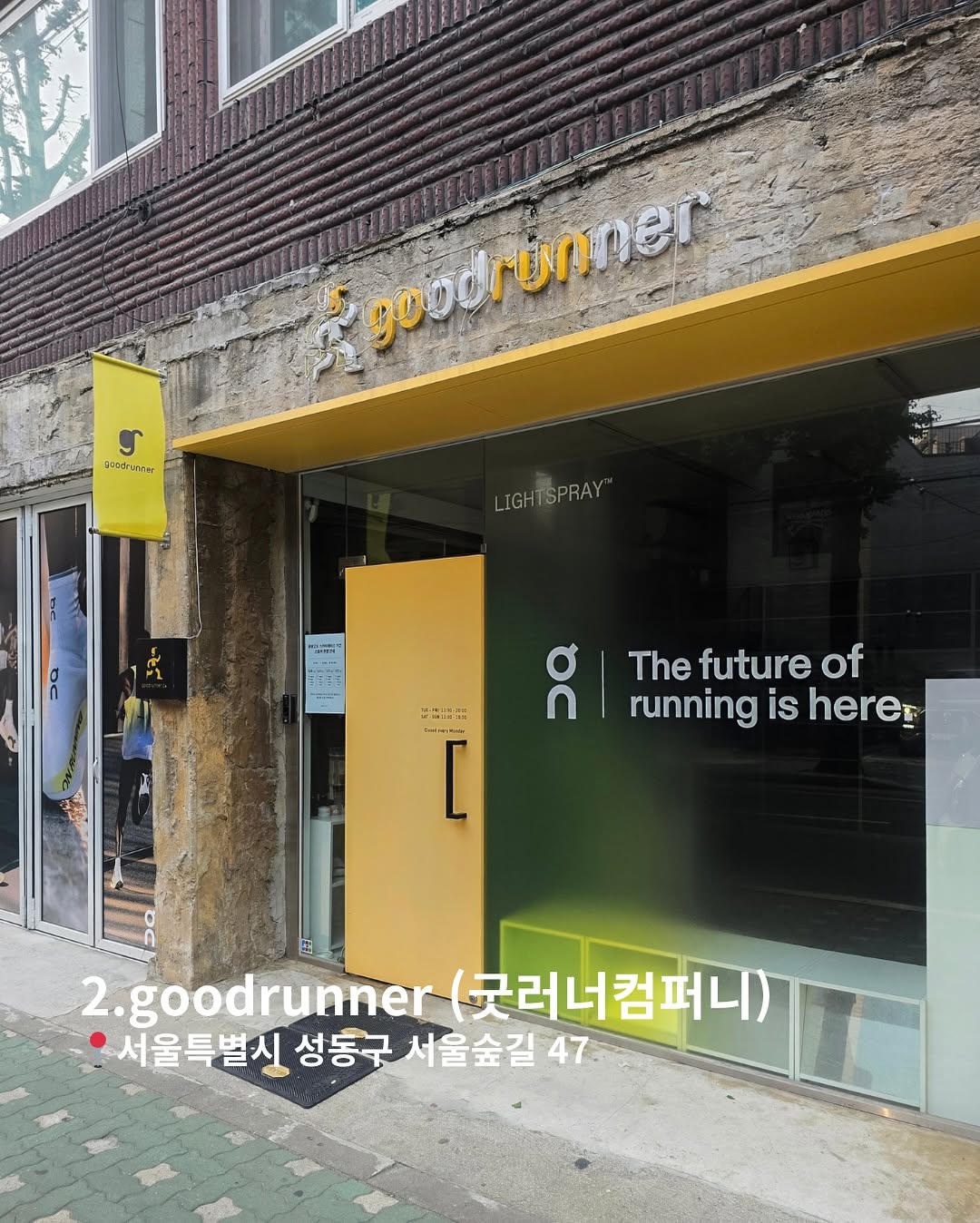 식지 않는 러닝 열기에요즘 제일 핫한 러닝코어룩 🏃🏻다양한 제품 구성뿐만 아니라,러닝 프로그램까지 진행하는 국내 러닝샵을 소개 드립니다 😌1️⃣ 웨어에버 런 (wherever run)인스타그램 @wherever.run📍서울특별시 종로구 자하문로 223▪️satisfy, portal, vibram, alexzono 등의 브랜드 취급▪️주기적으로 러닝+요가+음식을 묶은 웰니스 프로그램 진행▪️세컨핸즈 러닝 용품 취급2️⃣굿러너 컴퍼니 (goodrunner company)인스타그램 @goodrunner_co📍서울특별시 성동구 서울숲길 47▪️soar, on running, district vision 등의 브랜드 취급▪️서울숲점을 기반으로 북촌점, 더현대 서울점, 롯데백화점 부산 본점에 위치▪️서울숲 매장과 북촌점을 기점으로 많은 러닝 세션 진행3️⃣아웃오브올 (out of all)인스타그램 @outofall.store📍서울특별시 마포구 잔다리로3안길 11▪️satisfy, soar, district vision, norda 등의 브랜드 취급▪️서교점과 롯데백화점 명동에 위치▪️2층에서는 ’safesize‘ 머신으로 보다 정확한 발 사이즈 측정 가능하고, 지하 1층에는 러너들을 위한 커뮤니티 공간 마련4️⃣온유어마크 (ON YOUR MARK)인스타그램 @onyourmark_running📍서울특별시 종로구 자하문로6길 14▪️ adidas, mizuno, asics 등의 브랜드 취급▪️온유어마크 러닝 클래스 (OYMRC) 운영▪️러닝에 대한 전문적인 정보와 맞춤형 안내 제공#러닝 #running📷 이미지 출처 웨어에버 런 ((@wherever.run), 굿러너 컴퍼니(@goodrunner_co), 아웃오브올(@outofall.store),