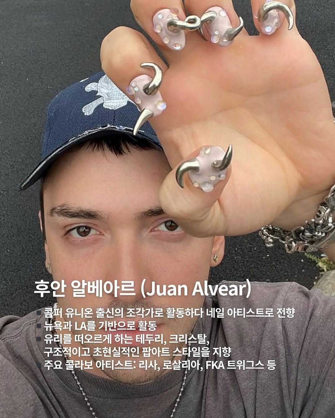 리사는 손 끝까지 힙하거든요 💎무대 위뿐 아니라 네일에서도자신만의 감각을 꾸준히 보여주는 리사😎그녀의 전담 네일 아티스트인 후안 알베아르의 특징은메탈릭한 질감과 구조적인 디테일!데일리 디자인부터 파격적인 디자인까지예술 작품이 떠오르는후안 알베아르의 네일을 모아보았습니다 🔍💅🏻후안 알베아르 (Juan Alvear)인스타그램 @byjuanalvear▪️뉴욕과 LA를 기반으로 활동하고 있음▪️쿠퍼 유니온 출신의 회화와 조각 전공 후 네일 아티스트로 전향▪️유리를 떠오르게 하는 테두리, 크리스탈, 구조적이고 초현실적인 팝아트 스타일을 지향▪️주요 콜라보 아티스트: 리사, 로살리아, FKA 트위그스 등#리사네일 #Lisanail#후안알베아르 #JuanAlvear📷 이미지 출처 리사(@lalalalisa_m), Juan Alvear(@byjuanalvear)