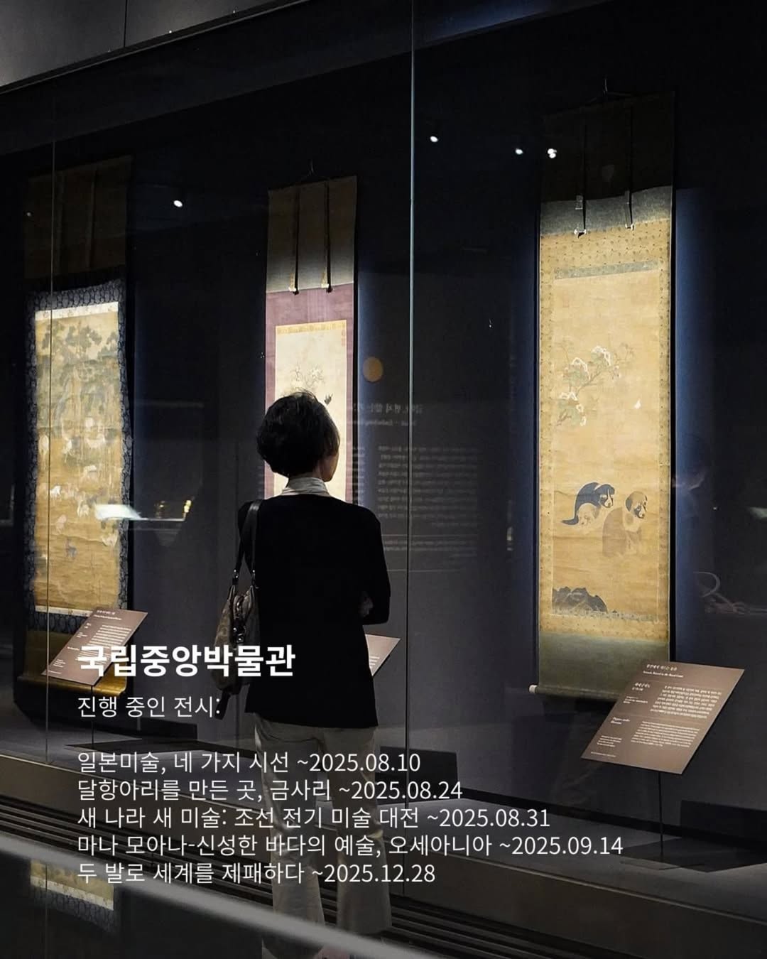 ▪️진행 중인 전시: <일본미술, 네 가지 시선>, <달항아리를 만든 곳, 금사리>, <새 나라 새 미술: 조선 전기 미술 대전>, <마나 모아나-신성한 바다의 예술, 오세아니아>, <두 발로 세계를 제패하다>
