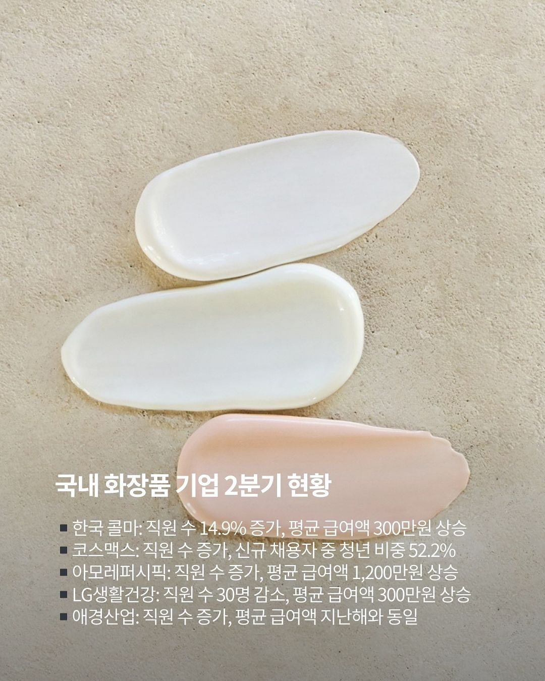 ▪️한국콜마, 아모레퍼시픽 등 국내 화장품 기업 평균 연봉 상승