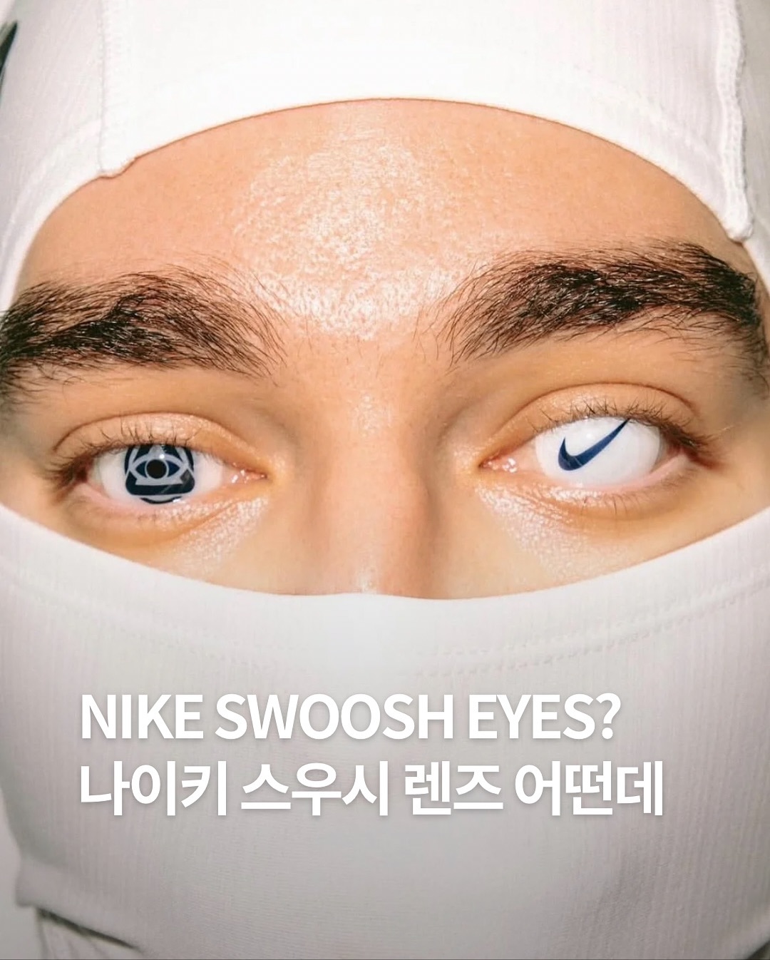 ▪️한 쪽은 Nike Swoosh 로고 & 다른 쪽은 Lifestyle Corporation 로고로 양쪽 눈 다르게 착용함