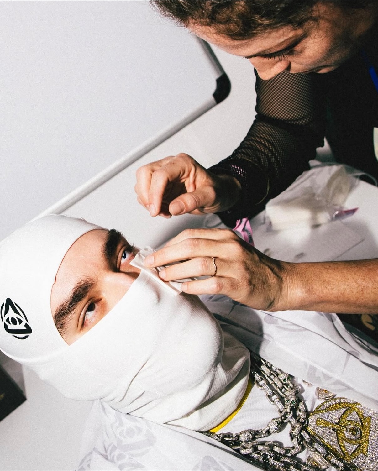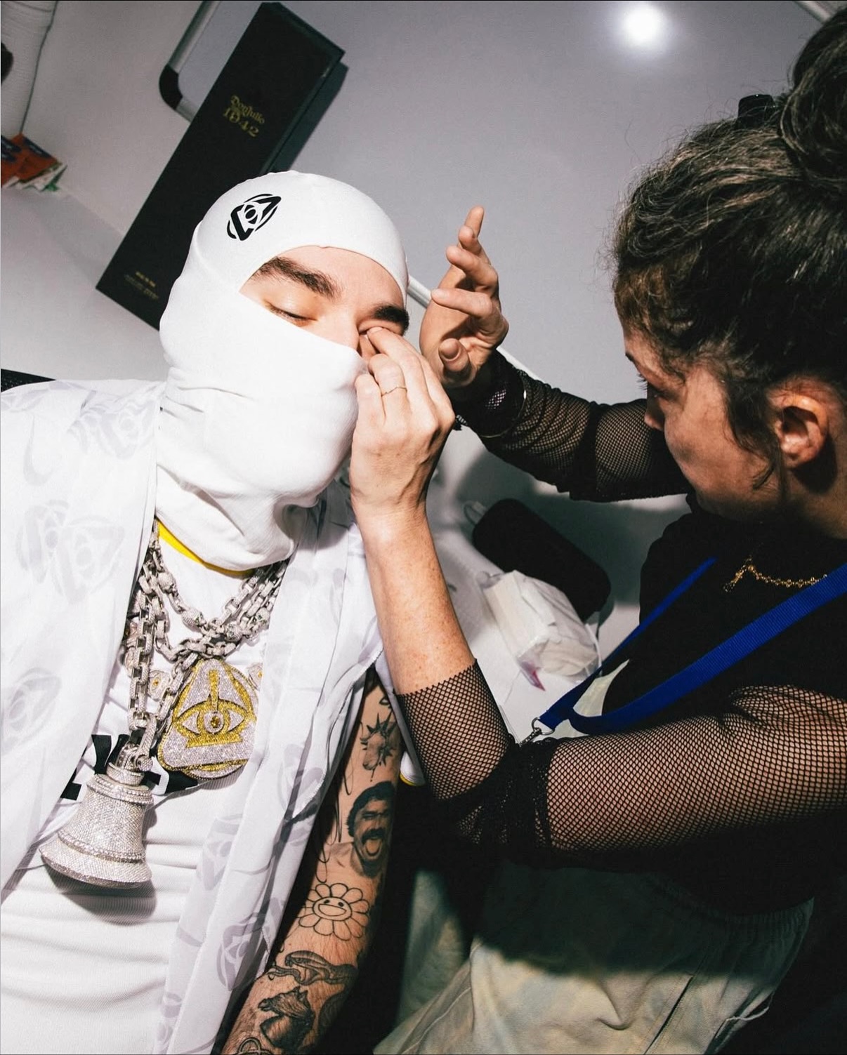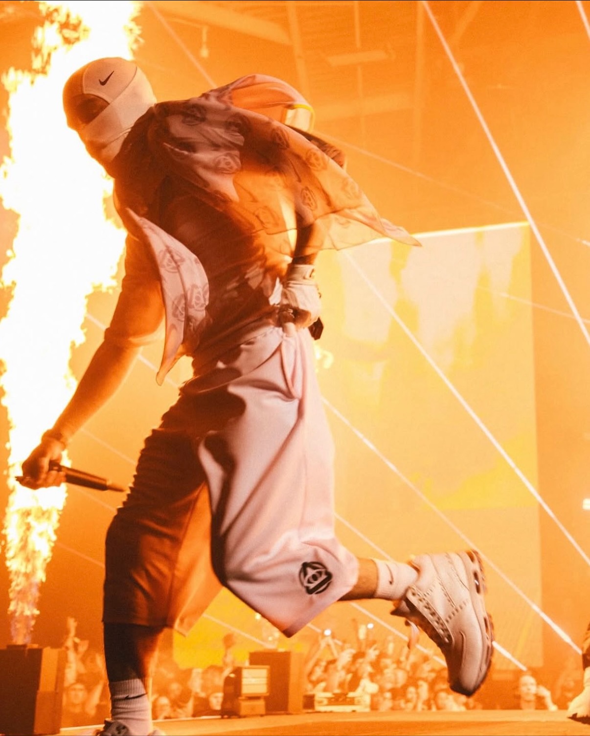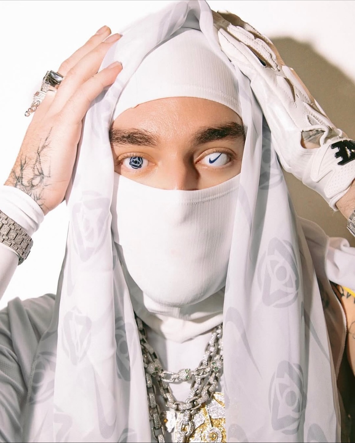 미국의 떠오르는 Gen-Z 래퍼 Yeat가 ComplexCon 공연을 위해 나이키 스우시 커스텀 콘택트 렌즈를 착용해 독보적인 룩을 선보였습니다!