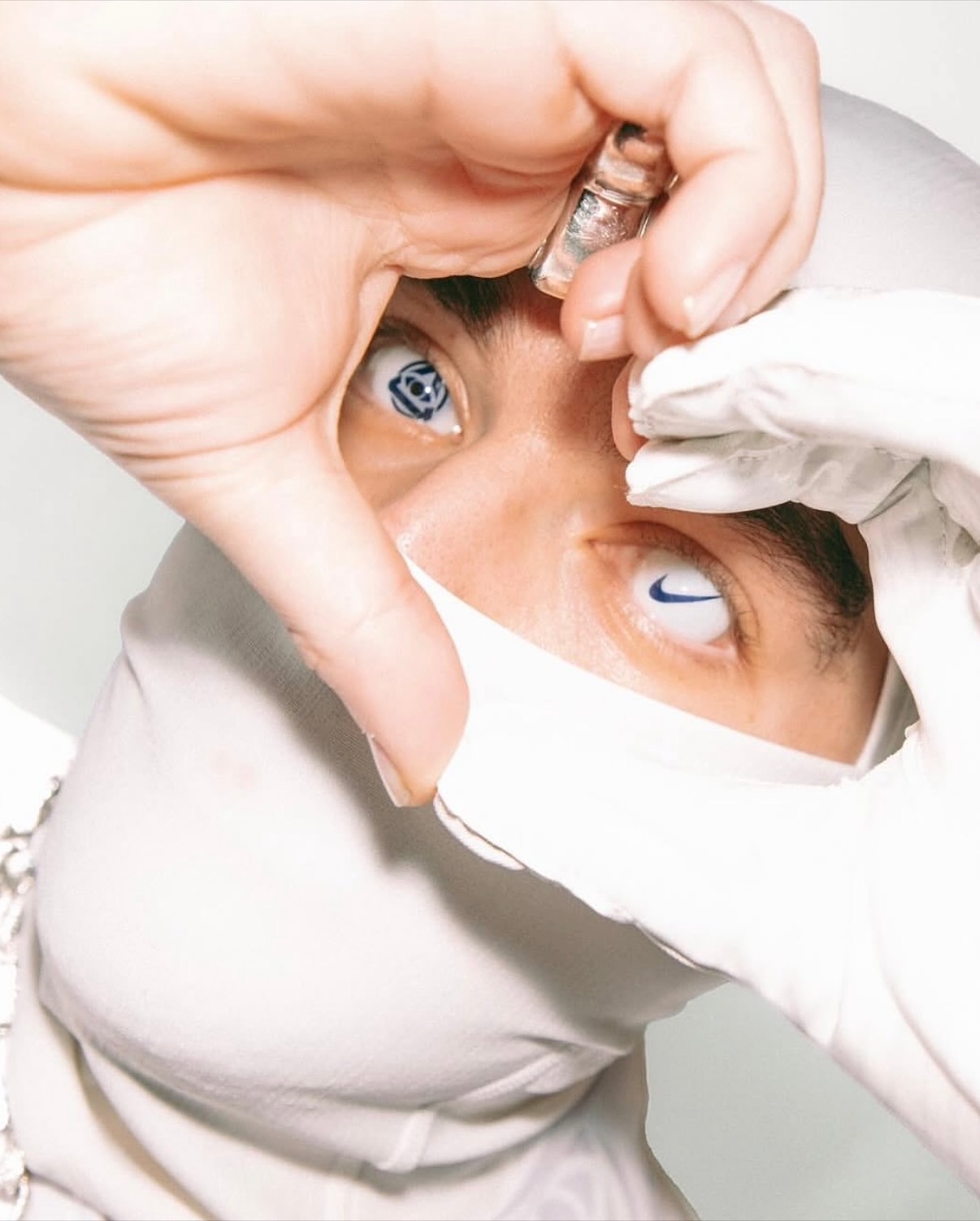 ▪️한 쪽은 Nike Swoosh 로고 & 다른 쪽은 Lifestyle Corporation 로고로 양쪽 눈 다르게 착용함 ▪️2004년 스포츠 선수들의 시각 능력 향상을 위해 나이키가 출시한 MaxSight 콘택트 렌즈에서 영감을 얻었다고 함 ▪️’스타 워즈’, ‘가디언즈 오브 갤럭시’, ‘원 배틀 애프터 어나더’의 커스텀 콘택트 렌즈를 만드는 기술자가 만든 제품이라 약 $10,000의 가격으로 책정됨