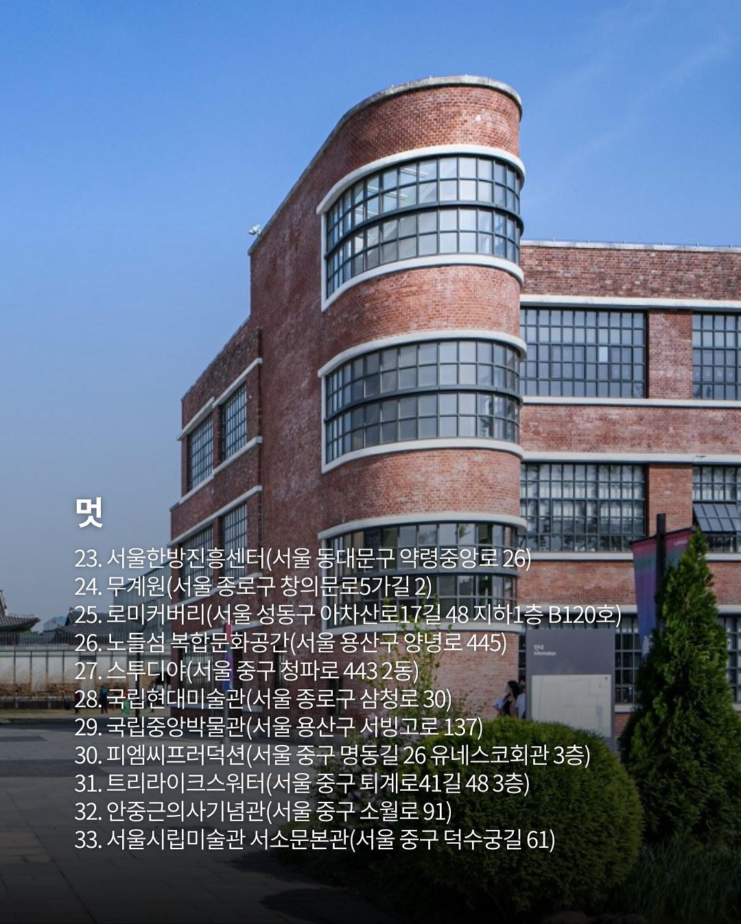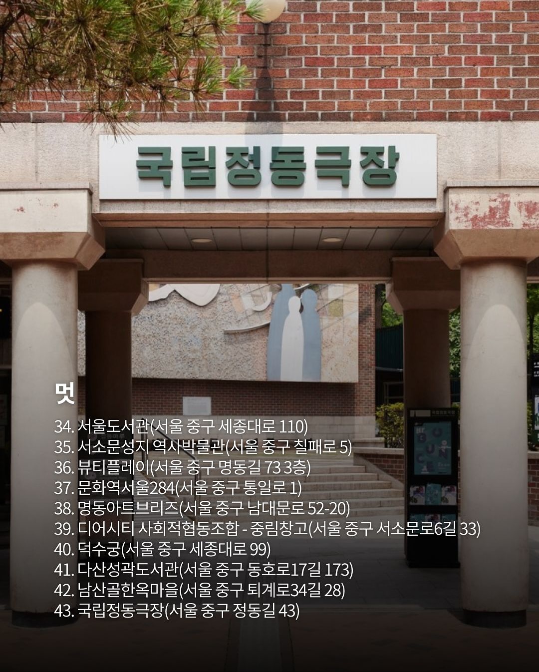 관광객뿐 아니라 시민들도 일상 속에서 쉽게 접할 수 있는 장소들로 구성된 100곳을 소개합니다 😌