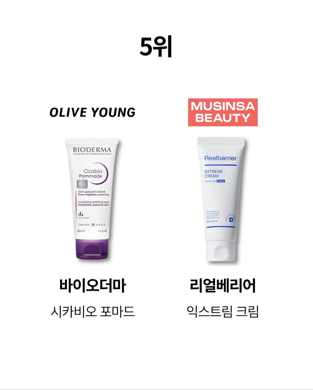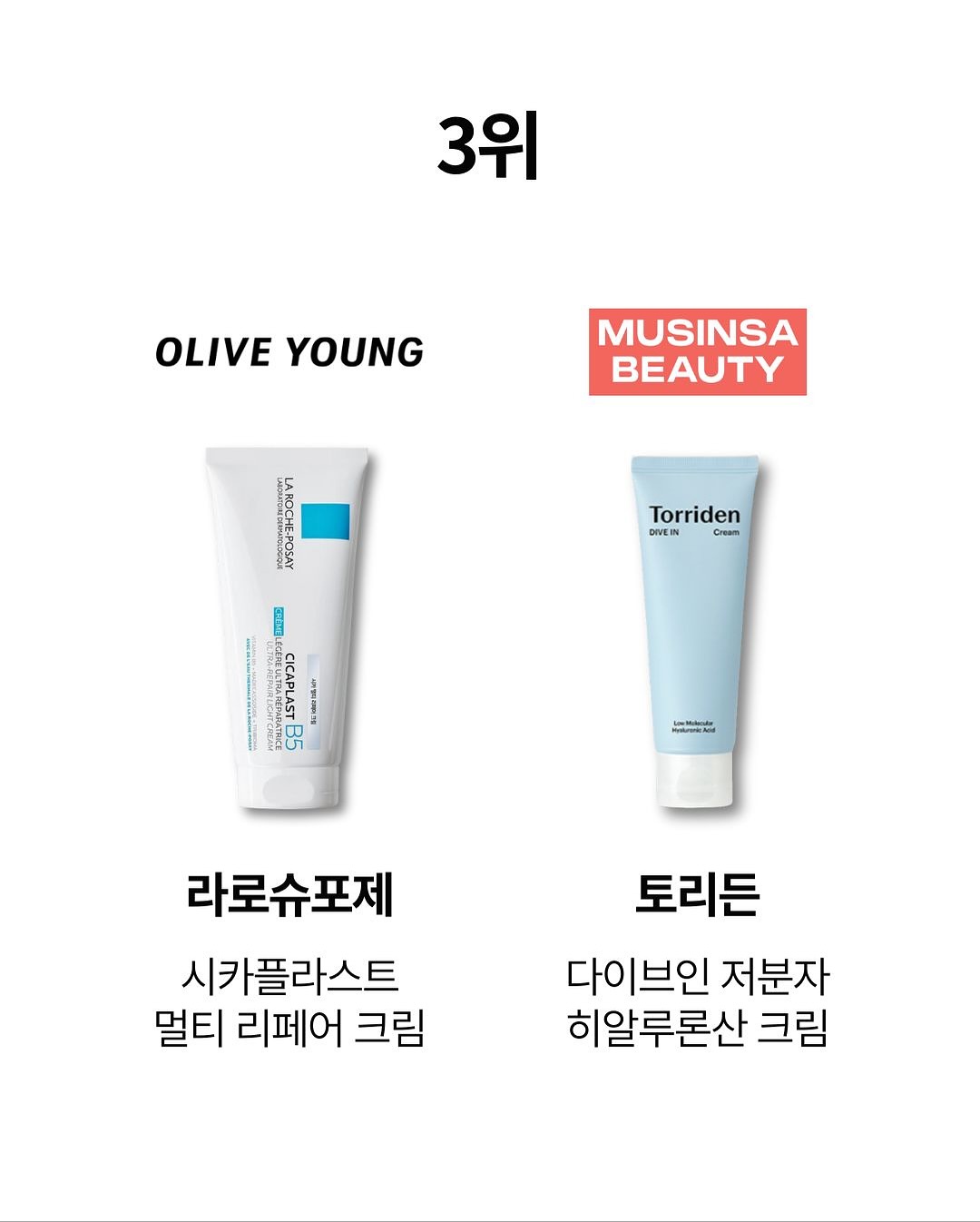 칼바람 맞고 건조해진 피부에 수분 공급이 필요한 요즘!수분 크림 랭킹을 데뷰웰이 한 눈에 비교해 드립니다⭐️📌올리브영 vs 무신사 뷰티: 수분 크림 베스트 5Rank1️⃣▪️올리브영: 에스트라 아토베리어 365 크림▪️무신사 뷰티: 에스트라 아토베리어 365 크림Rank2️⃣▪️올리브영: 라로슈포제 시카플라스트 밤 B5▪️무신사 뷰티: 넘버즈인 1번 판토텐산 액티브 수딩크림Rank3️⃣▪️올리브영: 라로슈포제 시카플라스트 멀티 리페어 크림▪️무신사 뷰티: 토리든 다이브인 저분자 히알루론산 크림Rank4️⃣▪️올리브영: 아누아 피디알엔 히알루론산 100 수분 크림▪️무신사 뷰티: 닥터지 레드 블레미쉬 클리어 수딩 크림Rank5️⃣▪️올리브영: 바이오더마 시카비오 포마드▪️무신사 뷰티: 리얼베리어 익스트림 크림✔️집계 기준: 11월 5일 베스트셀러 기준 (*세럼, 패드 제외 수분 크림만)#올리브영 #무신사뷰티 #수분크림📷 이미지 출처 올리브영, 무신사 뷰티 공홈