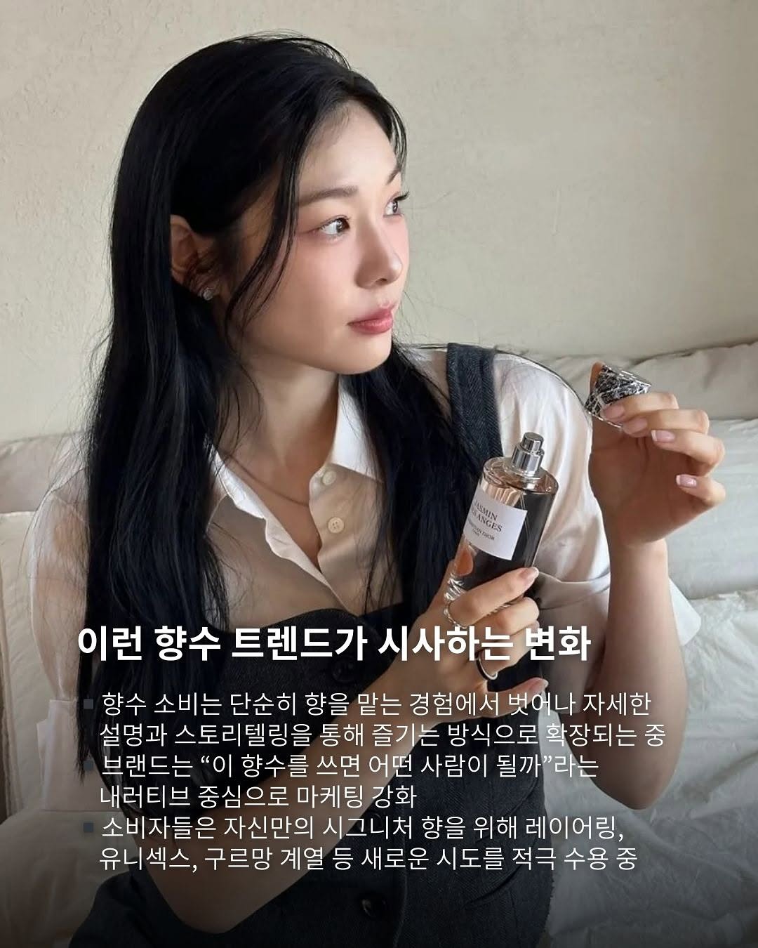 ▪️ 브랜드는 “이 향수를 쓰면 어떤 사람이 될까”라는 내러티브 중심으로 마케팅 강화