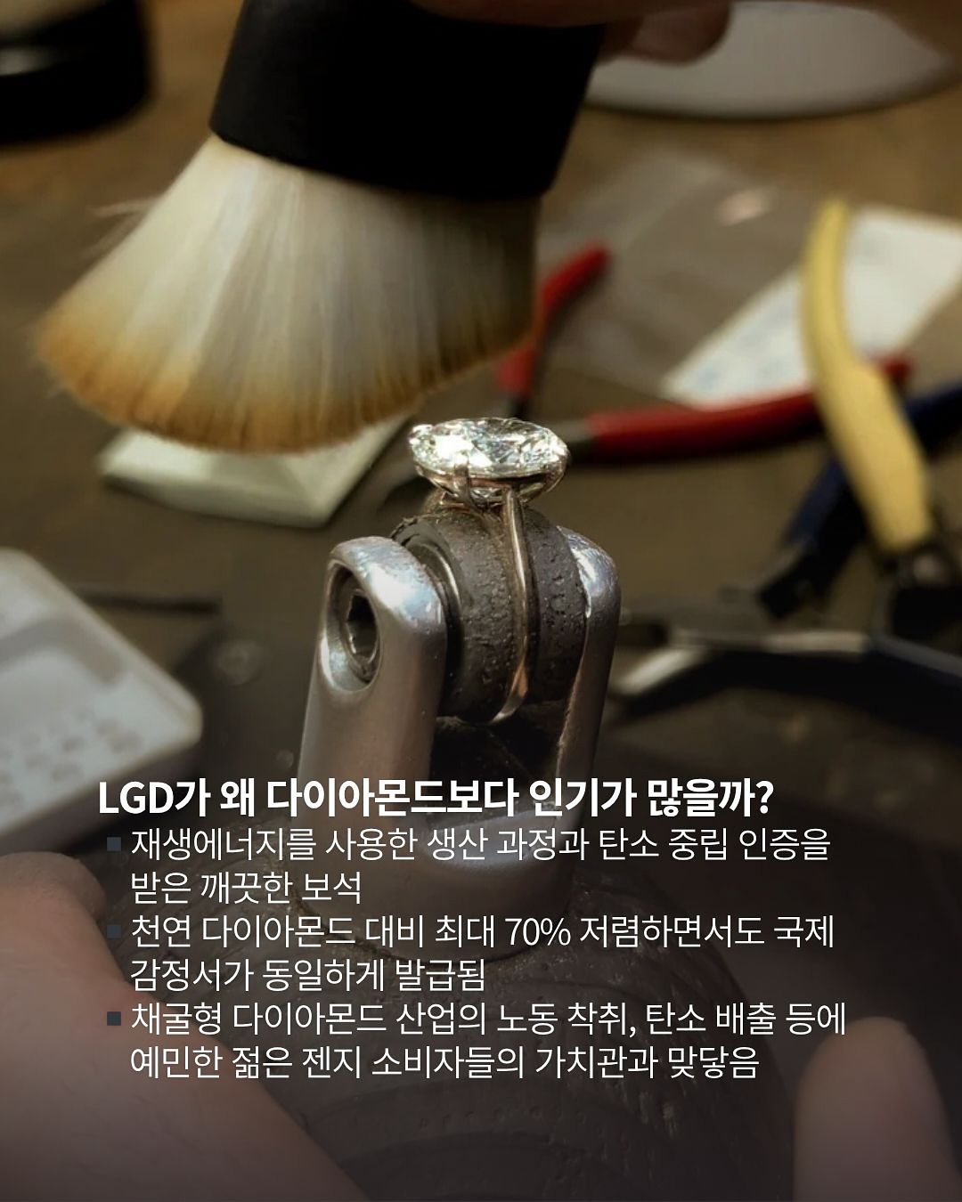 ▪️채굴형 다이아몬드 산업의 노동 착취, 탄소 배출 등에 예민한 젊은 세대들에게 선호