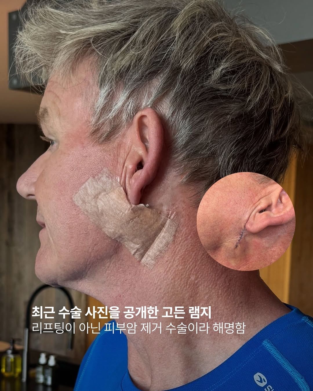 📌 고든 램지 근황 ▪️ 2024년 6월 자전거 타던 중 사고로 전신 타박상을 입음 ▪️ 헬멧 착용 덕분에 큰 사고는 피함 ▪️ 최근 2025년 8월 기저세포암 진단을 받아 귀 아래 부위의 피부암 제거 수술을 받음
