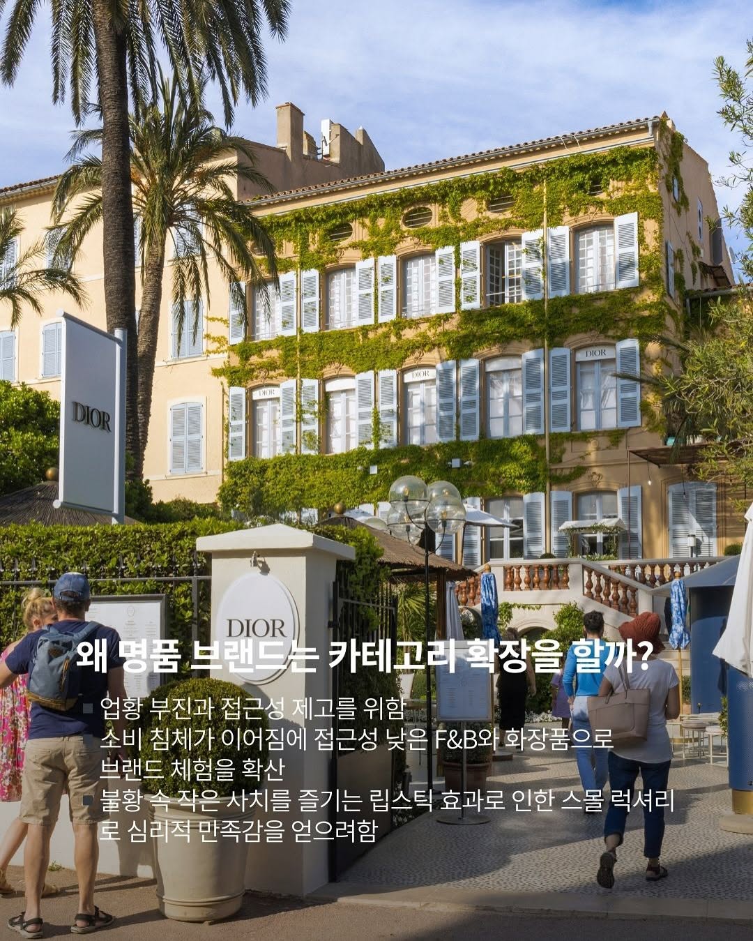 전 세계 경기 침체 속 명품 업계에도 변화가 찾아왔습니다💄작은 사치로 만족을 찾는 소비 트렌드인립스틱 효과가 명품 업계에도 확산 중입니다루이 비통은 첫 컬러 메이크업 라인La Beauté Louis Vuitton을 국내 출시하며가장 큰 화제를 모은 건 바로 가격!뷰티뿐만 아니라 ‘구찌 오스테리아’, ‘카페 디올’ 등소비자와 접점을 늘리기 위해 명품 브랜드들은F&B도 확장하는 전략을 세웠습니다명품 브랜드들이 앞다퉈 F&B와 뷰티로 확장하는 건불황 속에서도 소비자와 접점을 늘리기 위한 선택!명품 업계 트렌드와 럭셔리 브랜드의립밤 가격 현황에 대해 정리해 보았습니다 ✍🏻📌명품 업계의 카테고리 확장 트렌드▪️루이비통은 첫 뷰티 컬렉션과 청담 ‘르 카페 루이비통’을 런칭