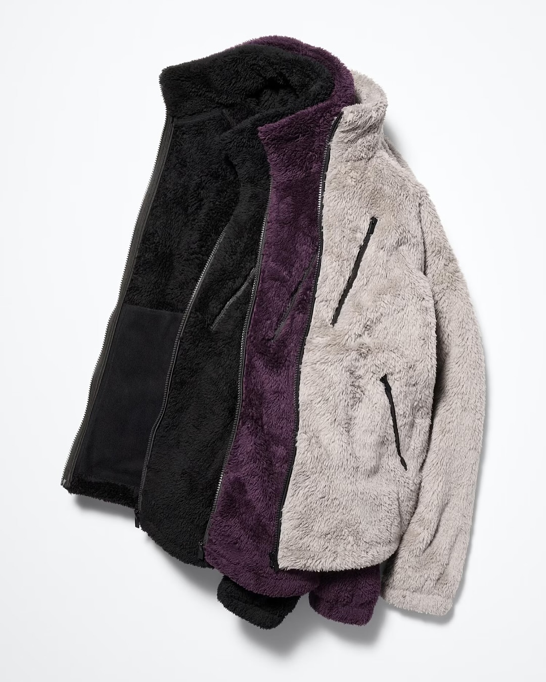 플리스 오버사이즈 가디건과 자켓, 팬츠 등으로 구성됐습니다.