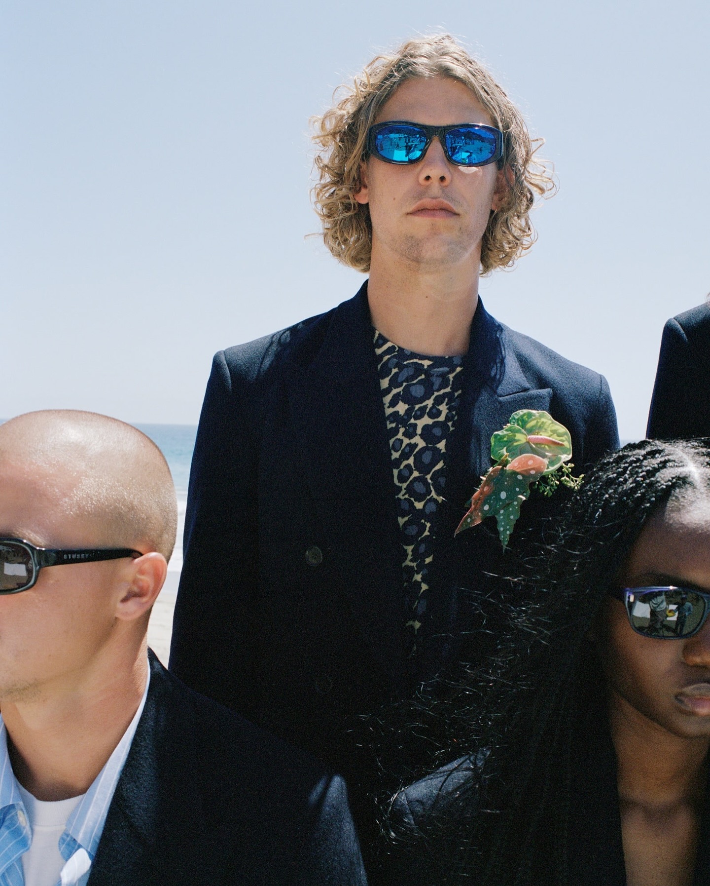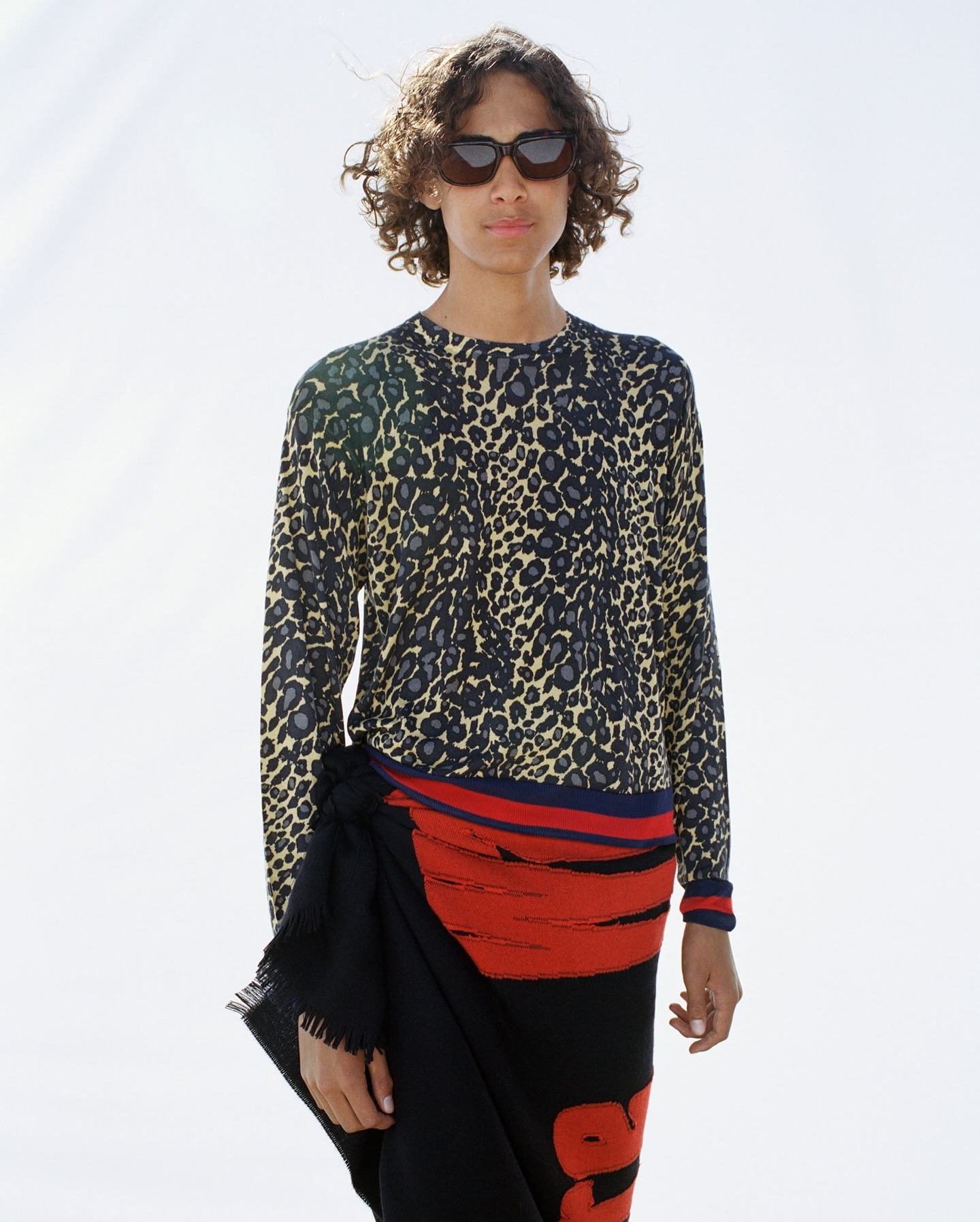 📌키 아이템 ▪️비치와 프레피의 만남으로 깔끔한 셔츠와 재킷에 레오파드, 스터드, 프린지를 얹어 단정함과 거침을 동시에 표현 ▪️로로 피아나의 울 소재롤 사용하여 접근이 용이한 세련미를 목표로 한 믹스 매치를 담아냄 ▪️서핑을 떠오르게 하는 네오프렌 소재로 제작된 후디를 도심적으로 전환한 아이템 추가