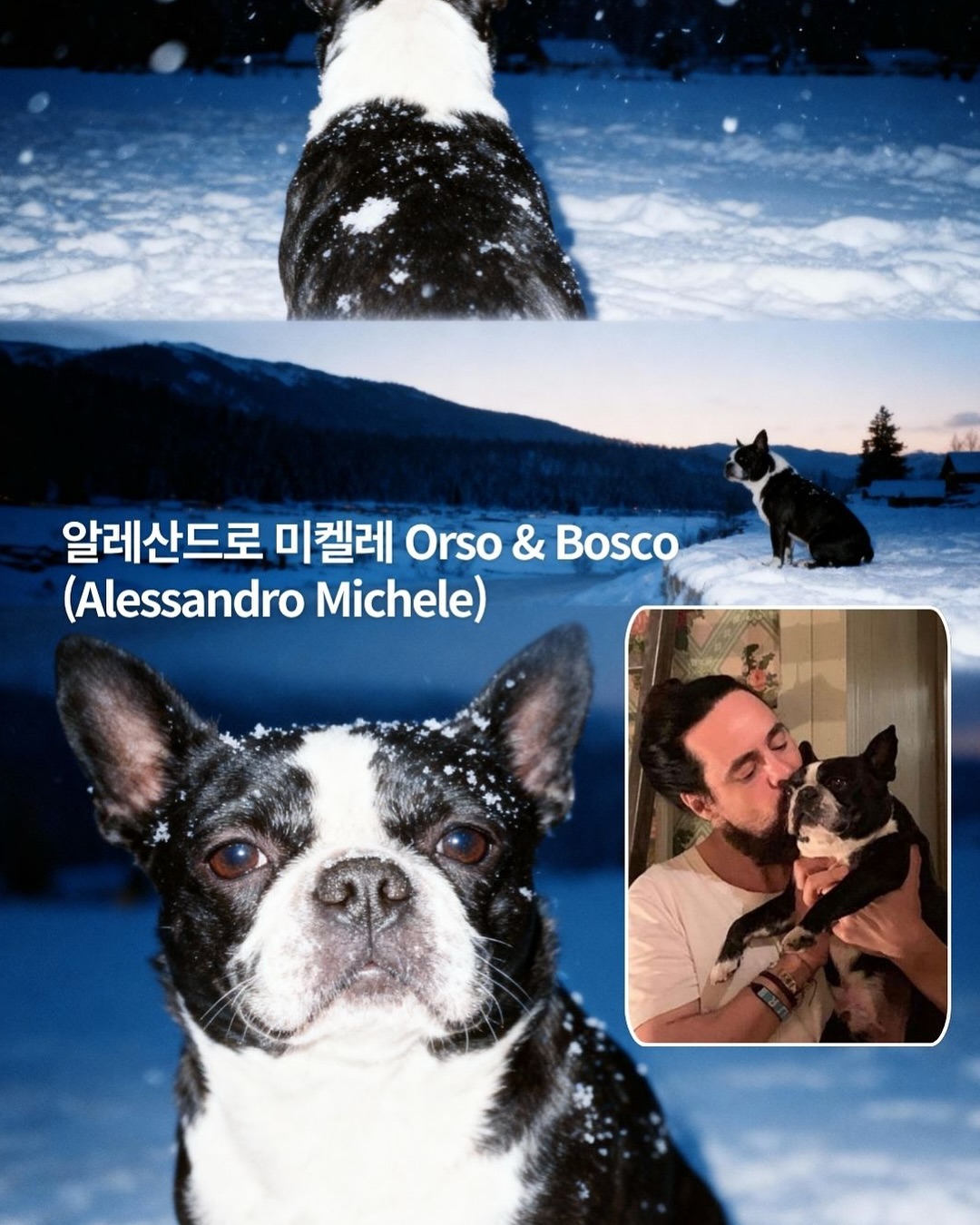 8️⃣ 알렉산드로 미켈레 & 보스턴 테리어 오르소와 보스코