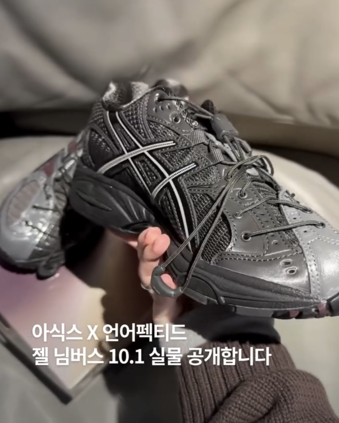 아식스X언어펙티드 콜라보 이거 참 예쁘다 💜🖤Asics x Unaffected, I wanted!발의 구조를 고려해 편안한 러닝화로 잘 알려진2000년대 초반 처음 출시된 토글 레이싱 시스템을적용한 젤 님버스 10.1 컨티넘👟11월 7일 발매되는 아식스와 언어펙티드 콜라보데패뉴가 신어보았습니다🫶🏻#아식스X언어펙티드 #ASICSXUNAFFECTED