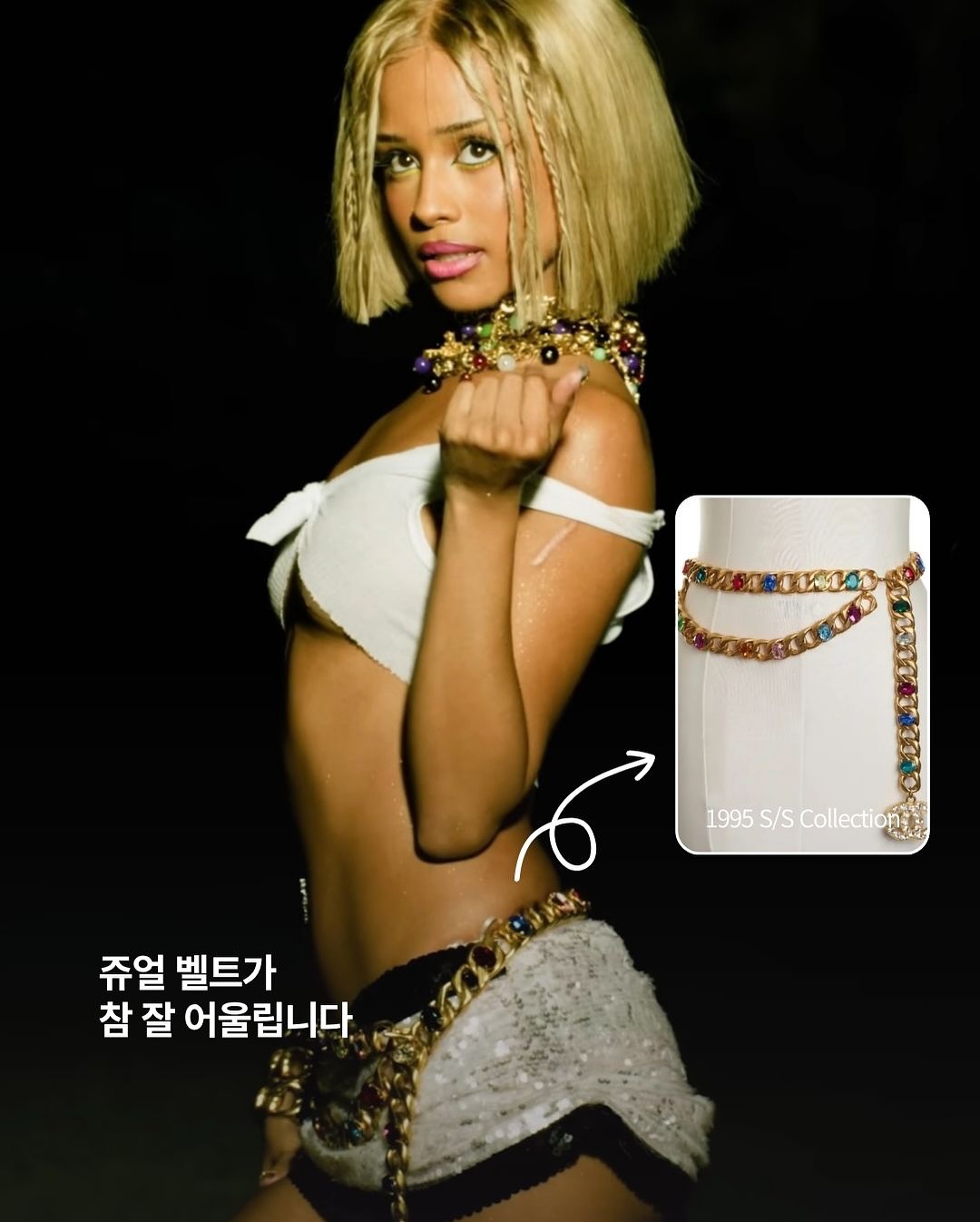 타일라가 신곡 ‘CHANEL”을 통해 샤넬 FW93 시즌의 골드 리볼버와 홀스터, 2000년대 주얼 벨트 그리고 SS13 시즌 훌라후프 백을 소화했습니다 👜