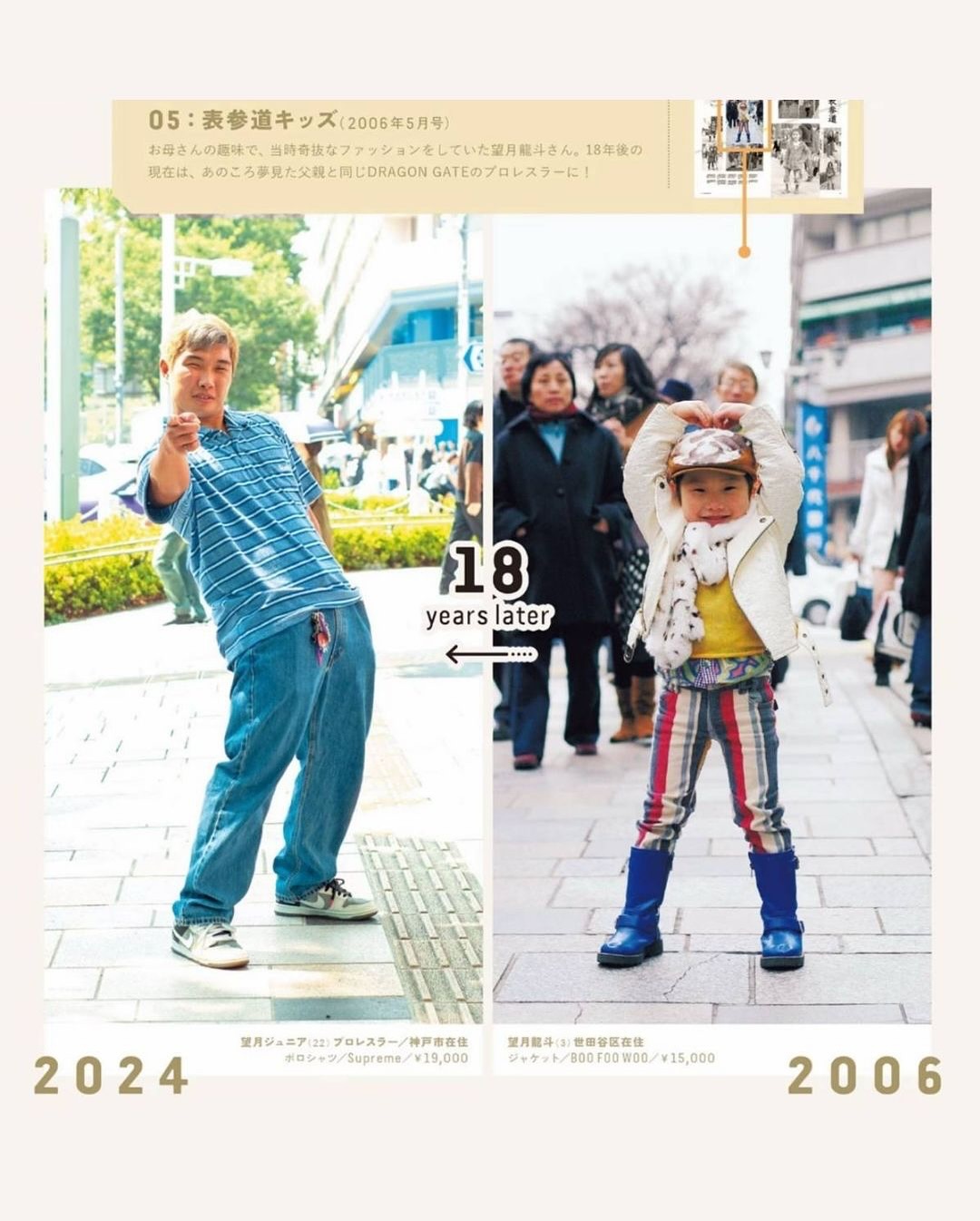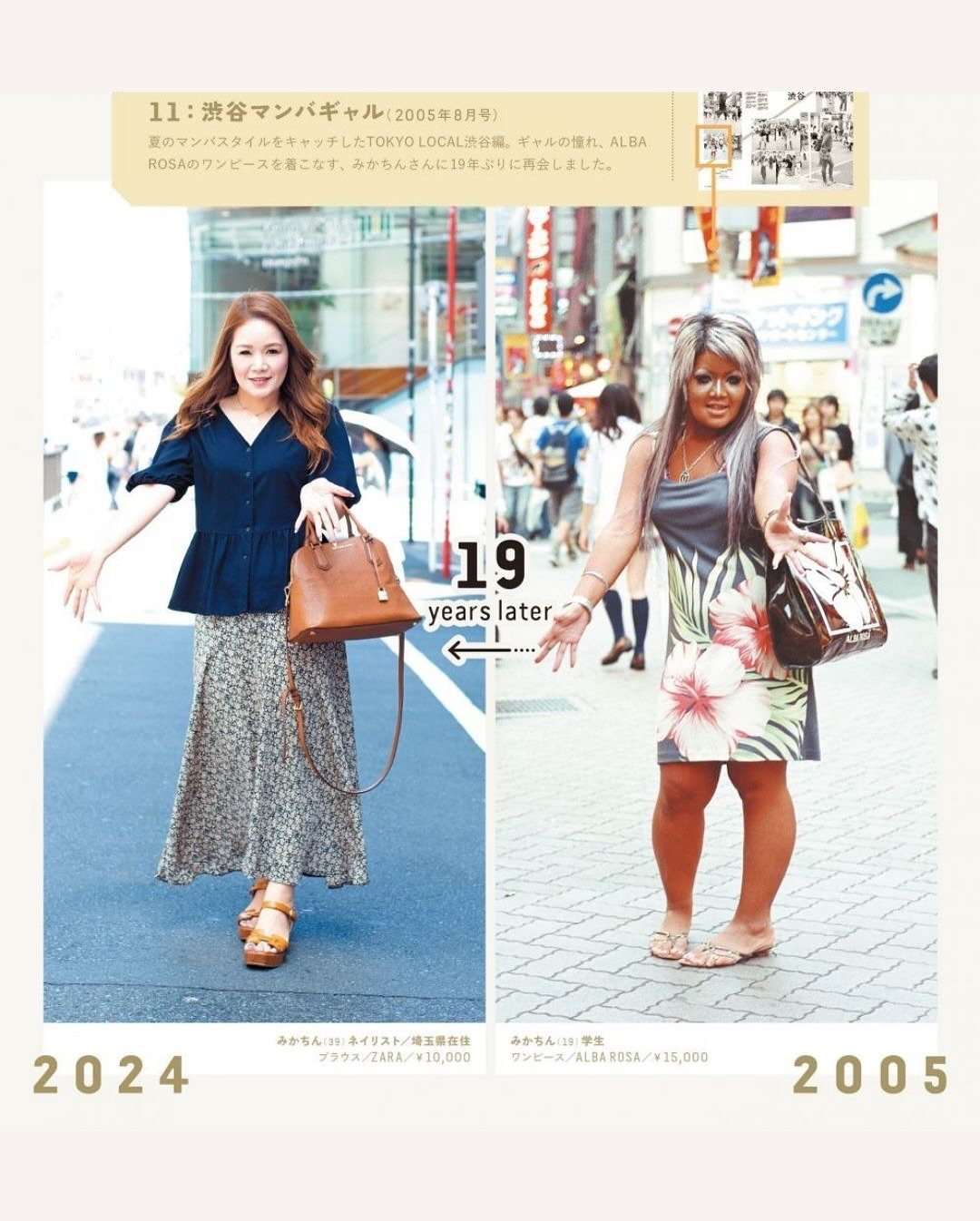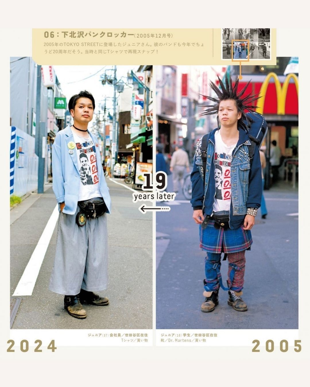 일본의 패션 매거진 도쿄 그래피티가 지난해 마지막호를 기념하며 공개한 특집 기사인 ‘타임슬립 사진관’은 과거 지면에 등장했던 인물들을 다시 찾아 같은 구도로 다시 촬영을 진행한 특집입니다 🙌🏻
