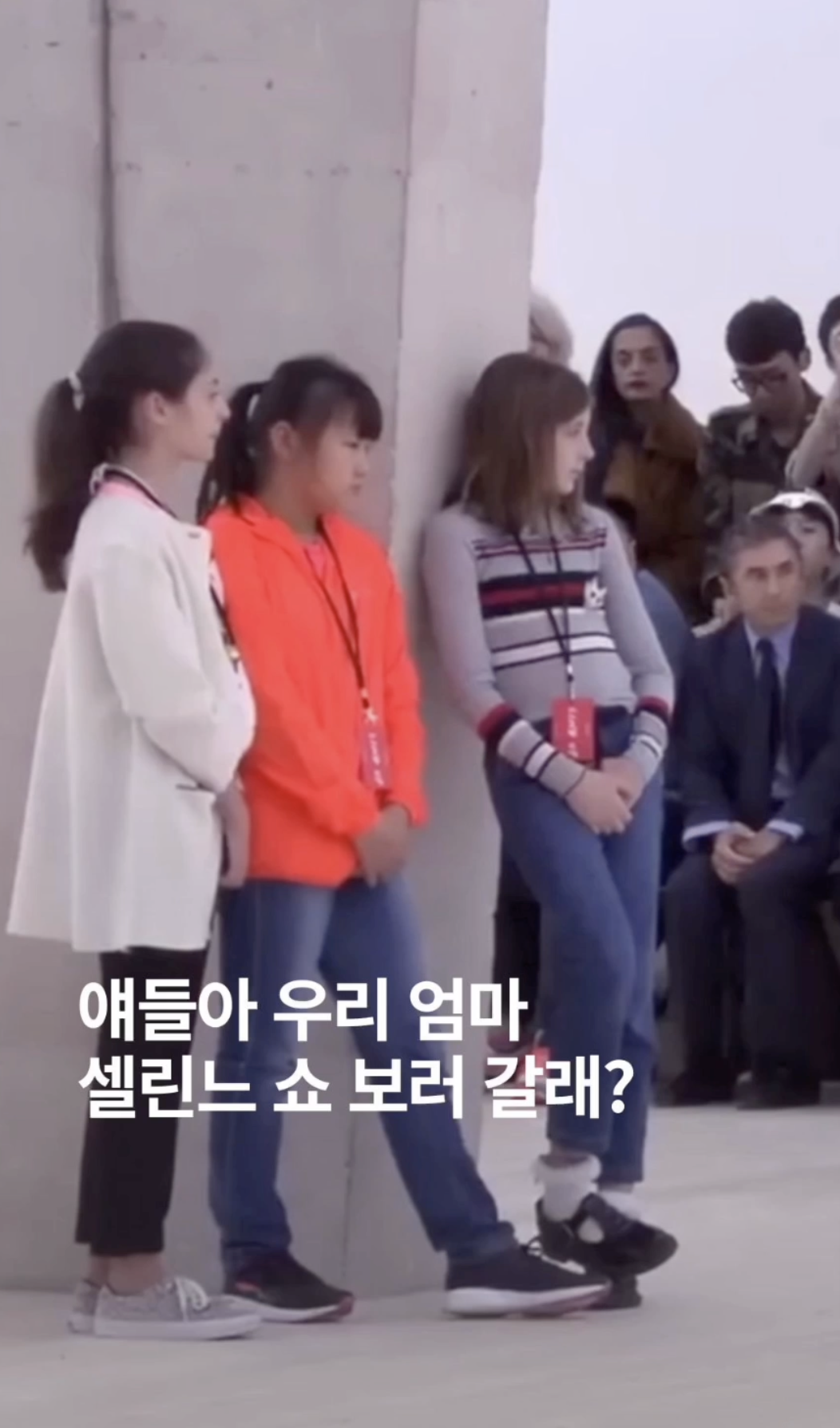 ▪️2017년 봄/여름 시즌, 파리에서 공개된 셀린느 쇼 ▪️피비 파일로가 자신의 딸 마야 위그램과 친구들을 무대에 세운 독특한 연출 ▪️약 10분간 패스 목걸이를 걸고 관객석 대신 무대 위에서 쇼를 직접 관람 ▪️피비 파일로는 해당 쇼에서 미니멀하면서도 여성의 삶을 강조한 의상을 선보임