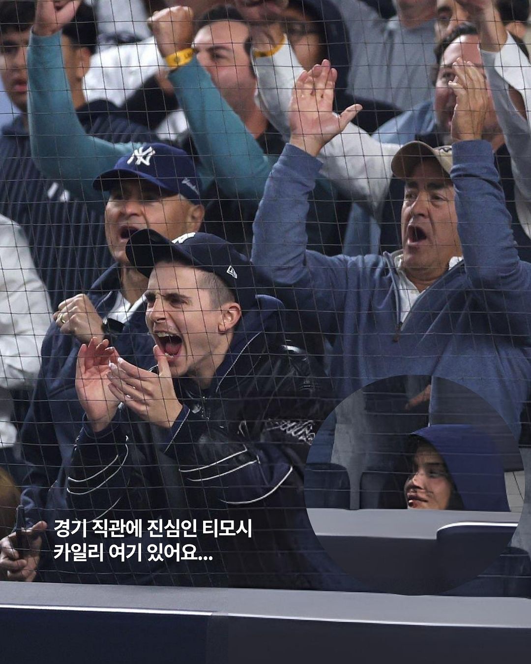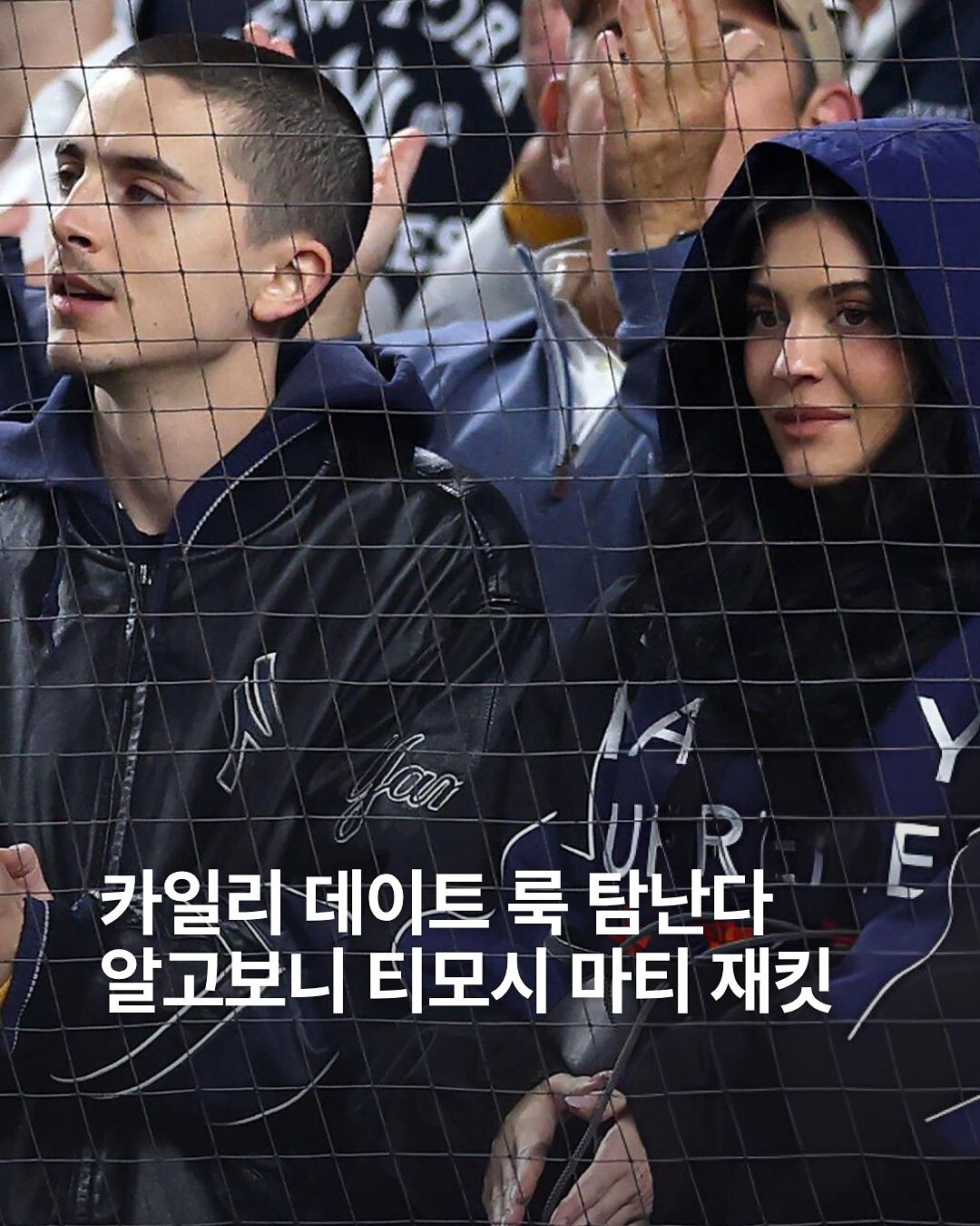 최근 버즈컷으로 파격 변신한 티모시와 카일리가 함께 뉴욕 양키스 경기장에서