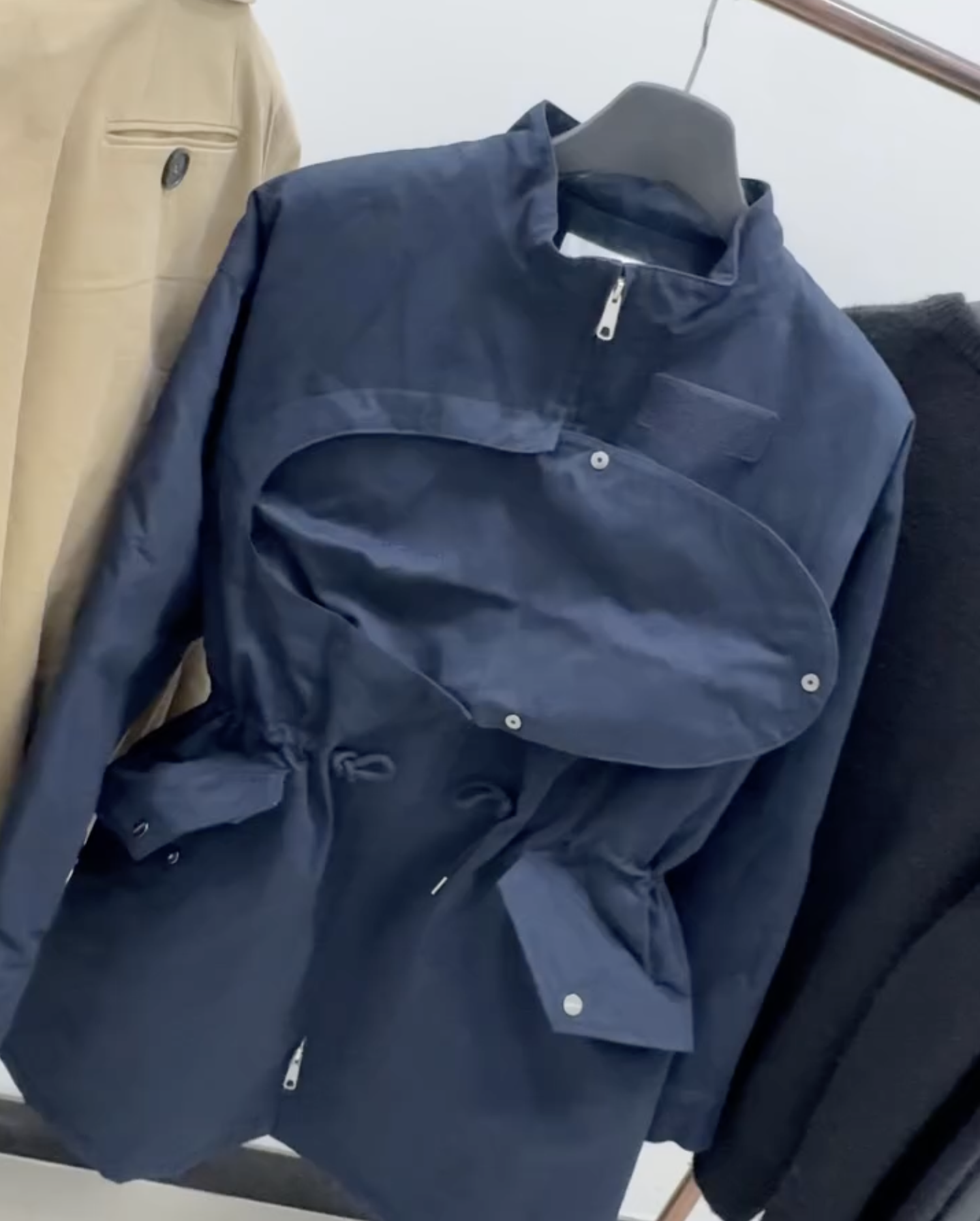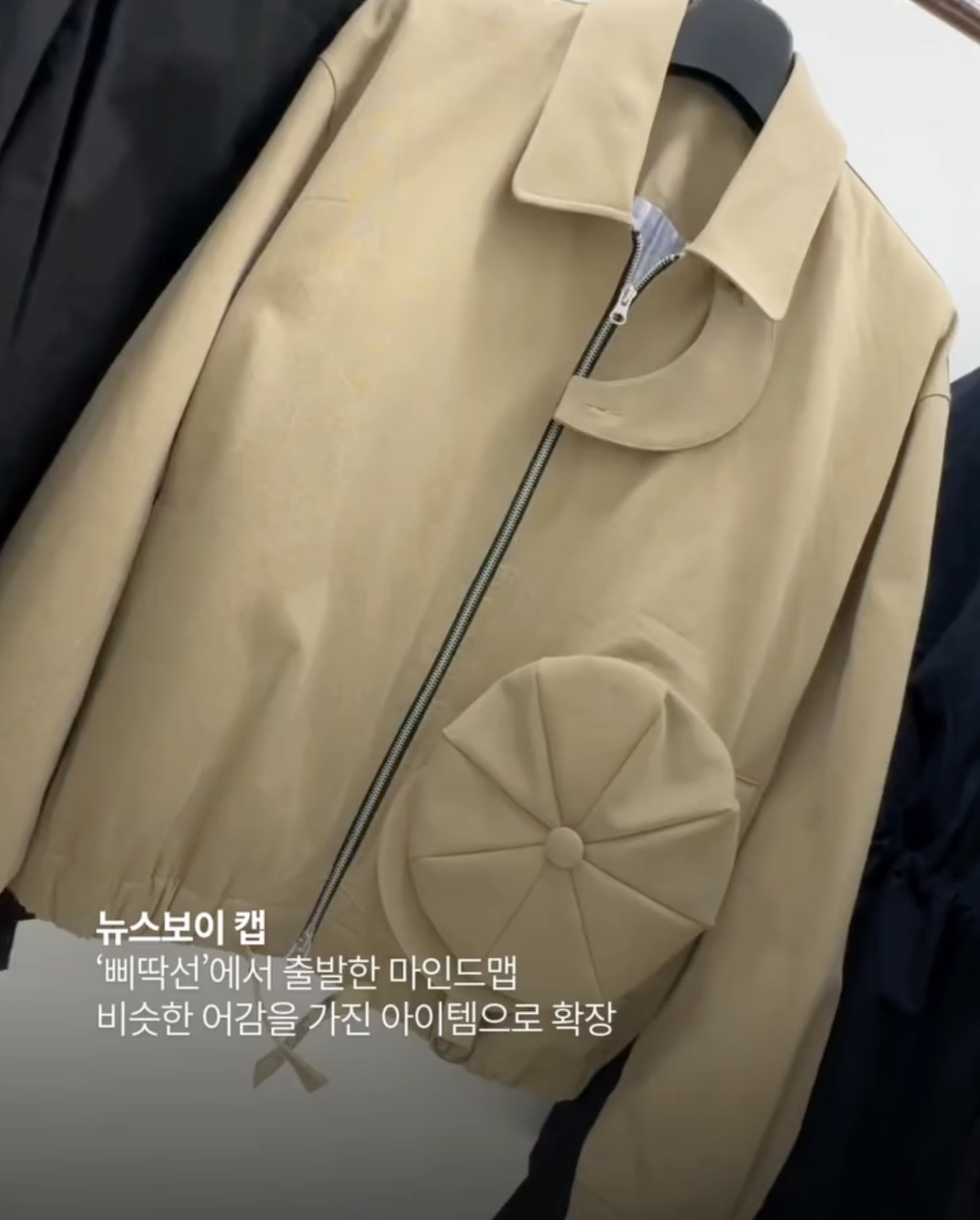 ▪️재킷에 뉴스보이 캡을 모자처럼 적용한 구조적 디테일