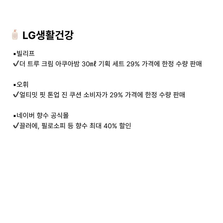 ✔️ 페리오, 온더바디, 엘라스틴 등 LG생활건강 대표 브랜드 1+1행사