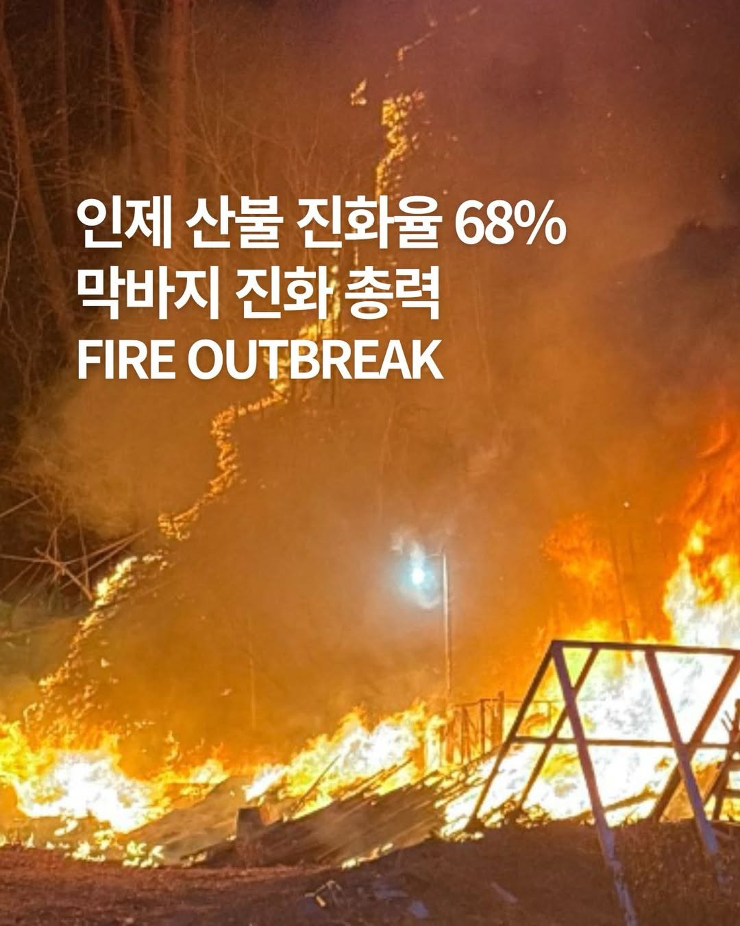 인제 산불 진화율 68%, 막바지 진화 총력