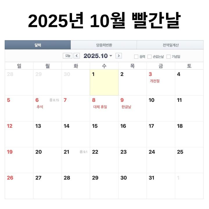 🗓️ 2025년 10월 빨간날