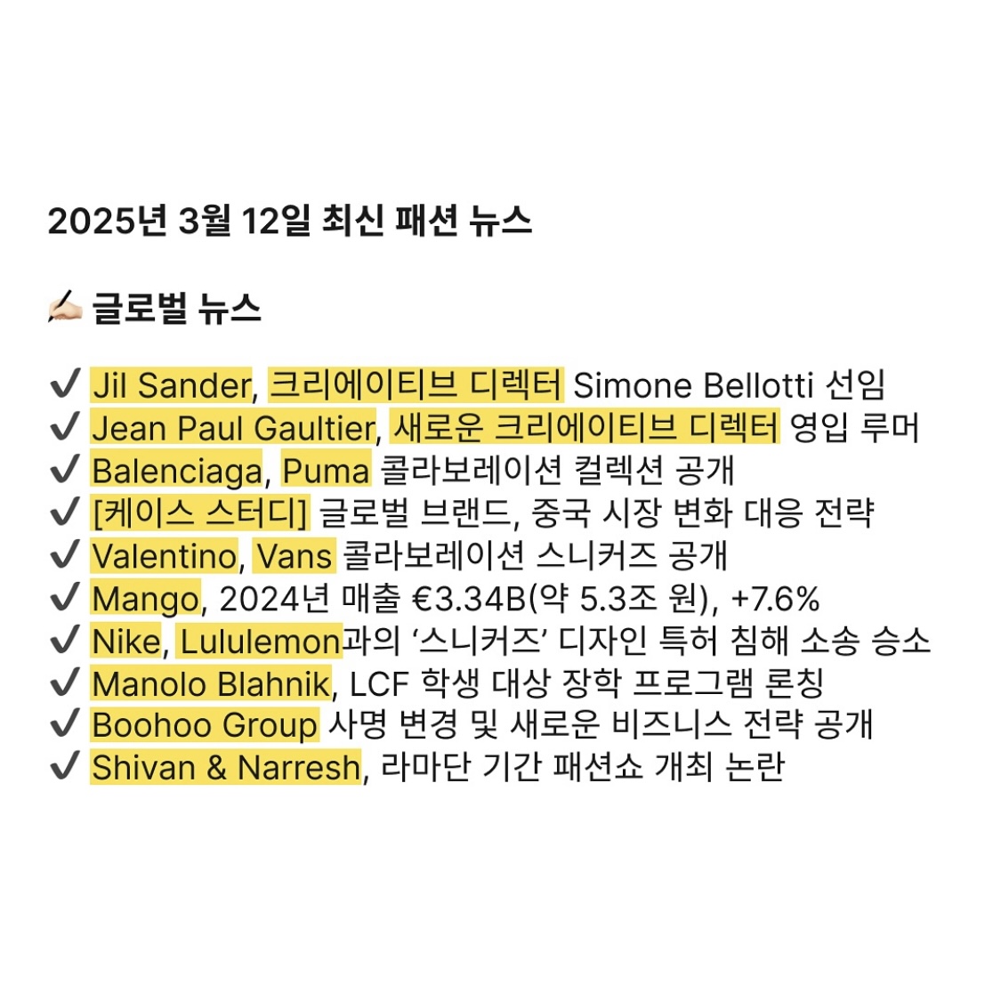 2025년 3월 12일 최신 패션 뉴스