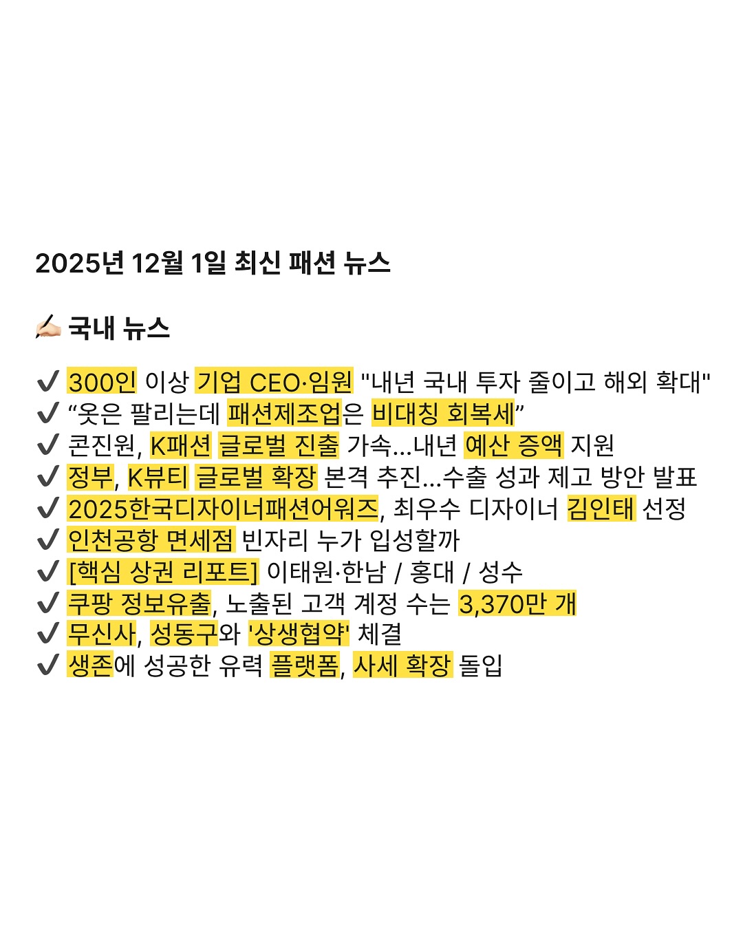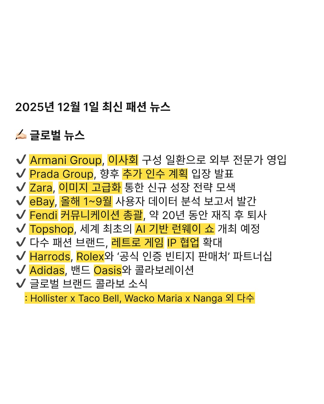 2025년 12월 1일 최신 패션 뉴스