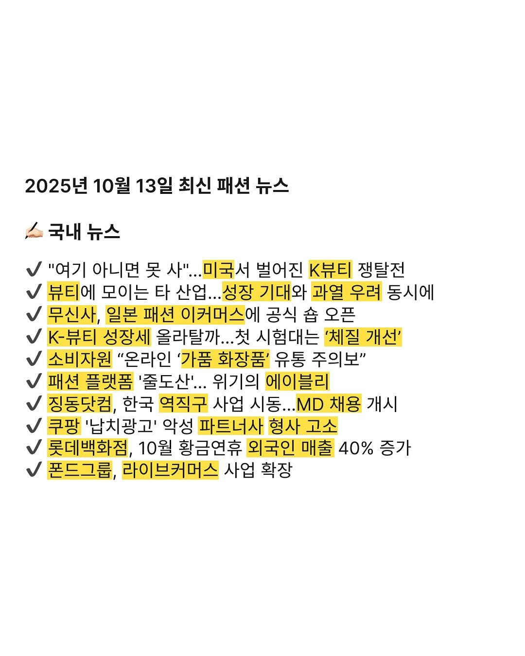 • 최근 미국을 휩쓸고 있는 K뷰티 붐의 영향으로 세포라, 얼타뷰티 등 미국 대표 뷰티 유통사들이 ‘K뷰티 독점 판매 경쟁’을 펼치고 있습니다.