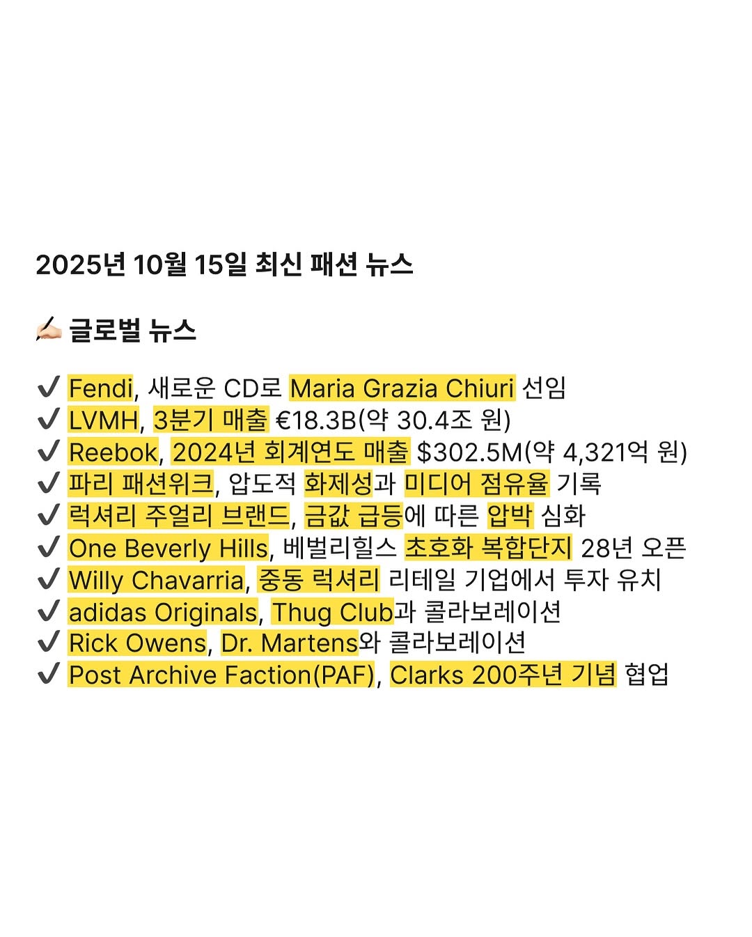 • 글로벌 미디어 분석 기관 Onclusive 보고서에 따르면 2026 S/S 시즌 4대 패션위크(뉴욕/런던/밀란/파리) 중 파리가 높은 화제성과 미디어 점유율 기록