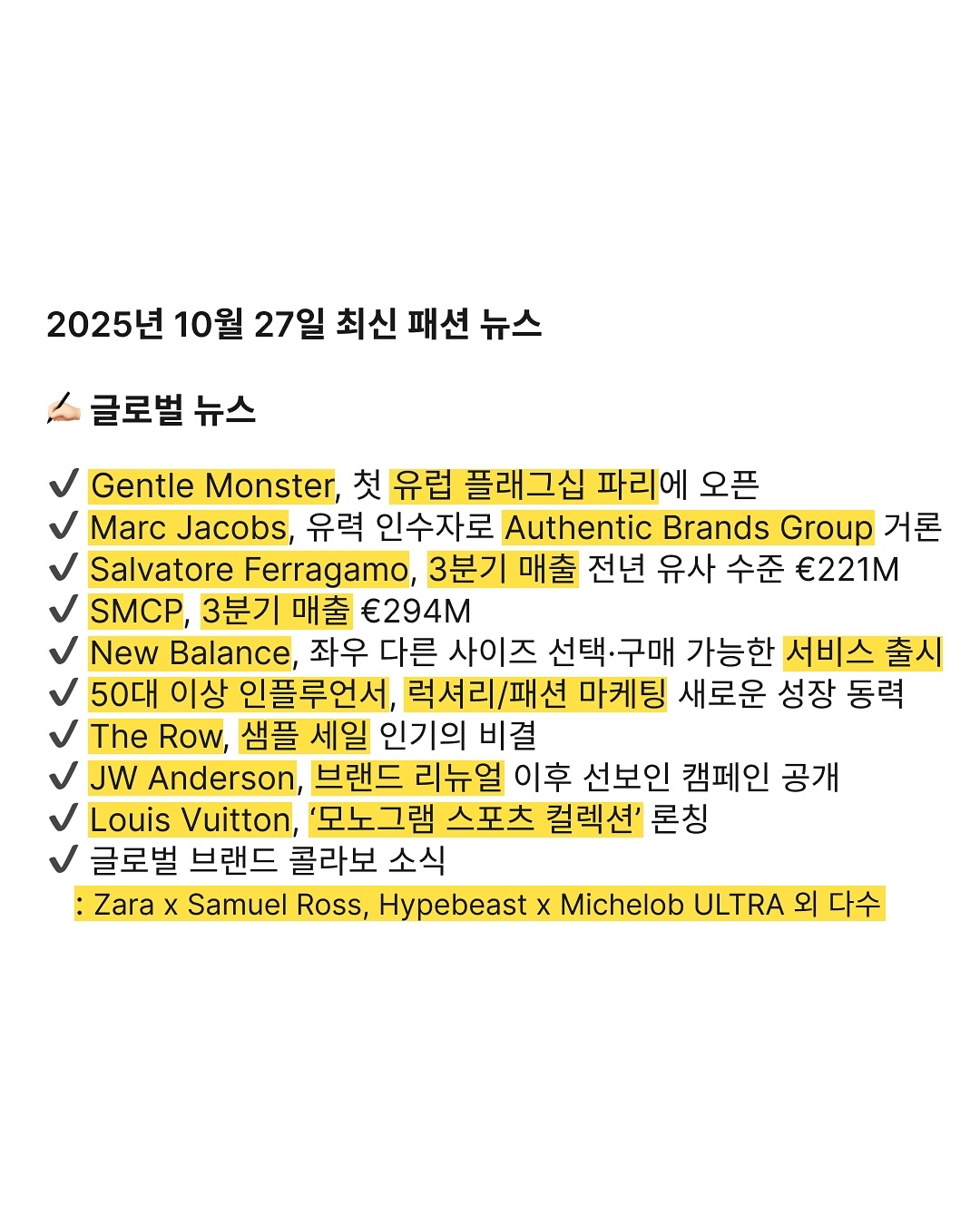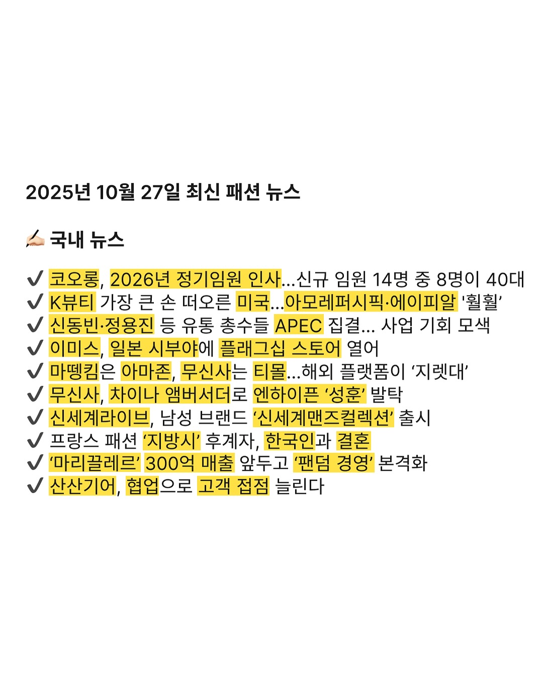 2025년 10월 27일 최신 패션 뉴스