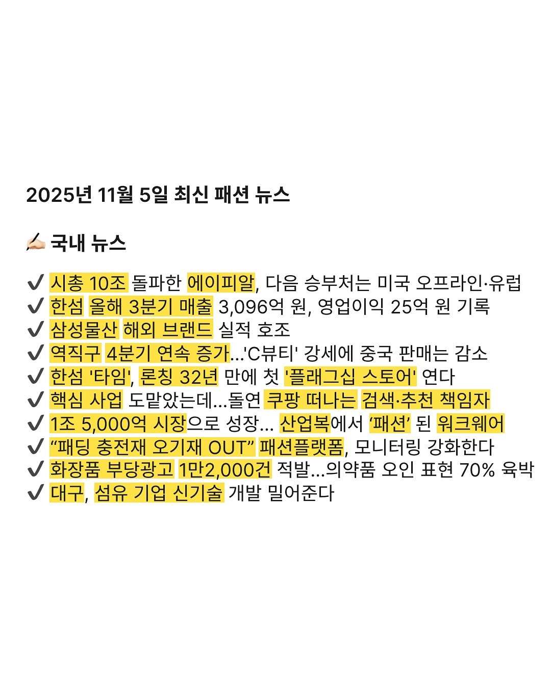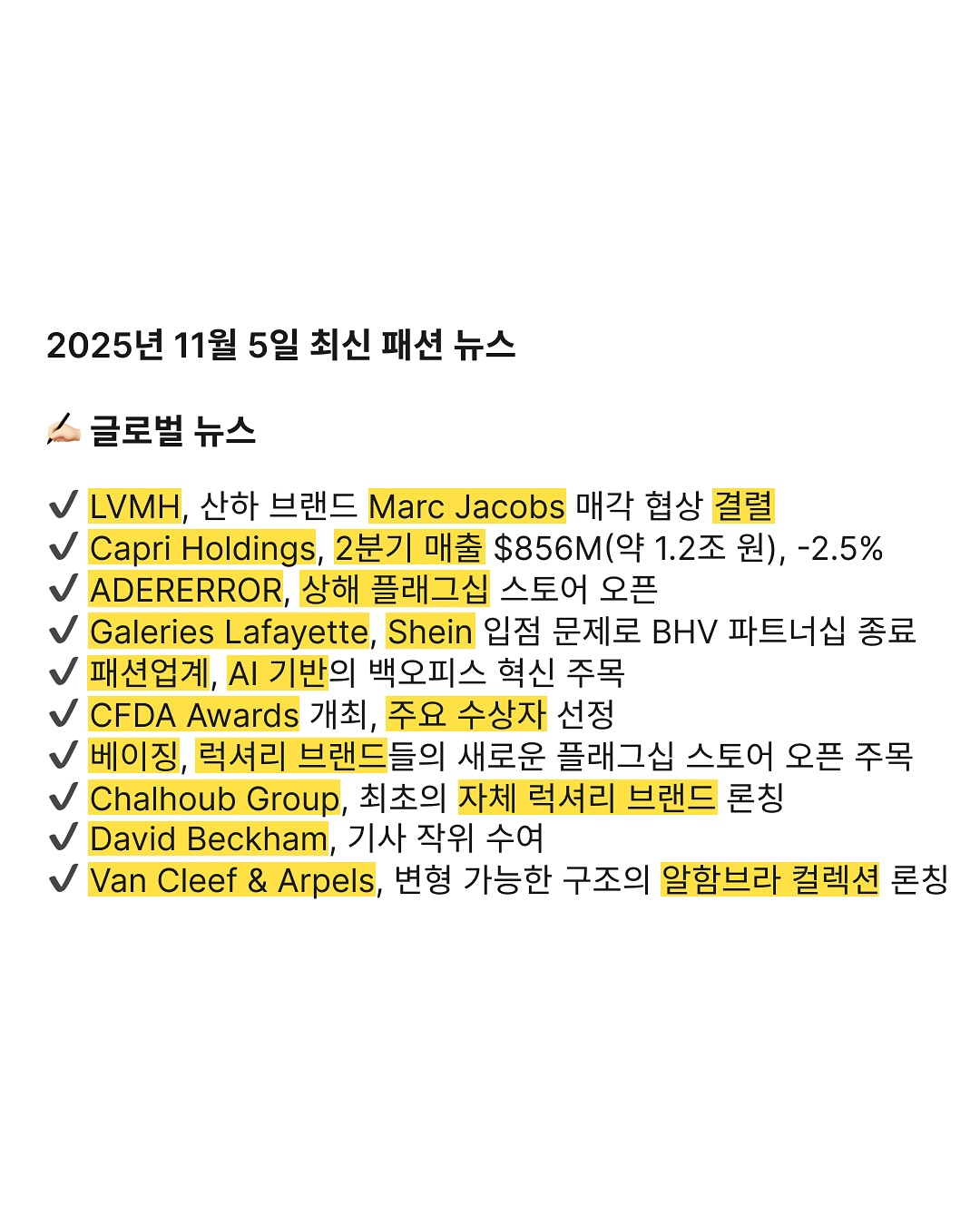 2025년 11월 5일 최신 패션 뉴스