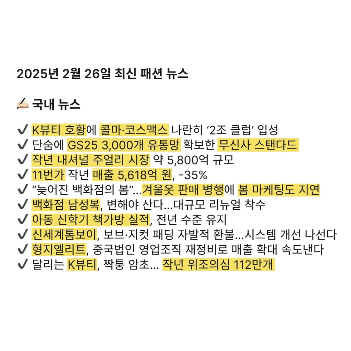 • 무신사에서 전개하는 자체 브랜드 ‘무신사 스탠다드’가 GS25의 3,000개 유통망을 확보, 다음 달 2일부터 본격 판매