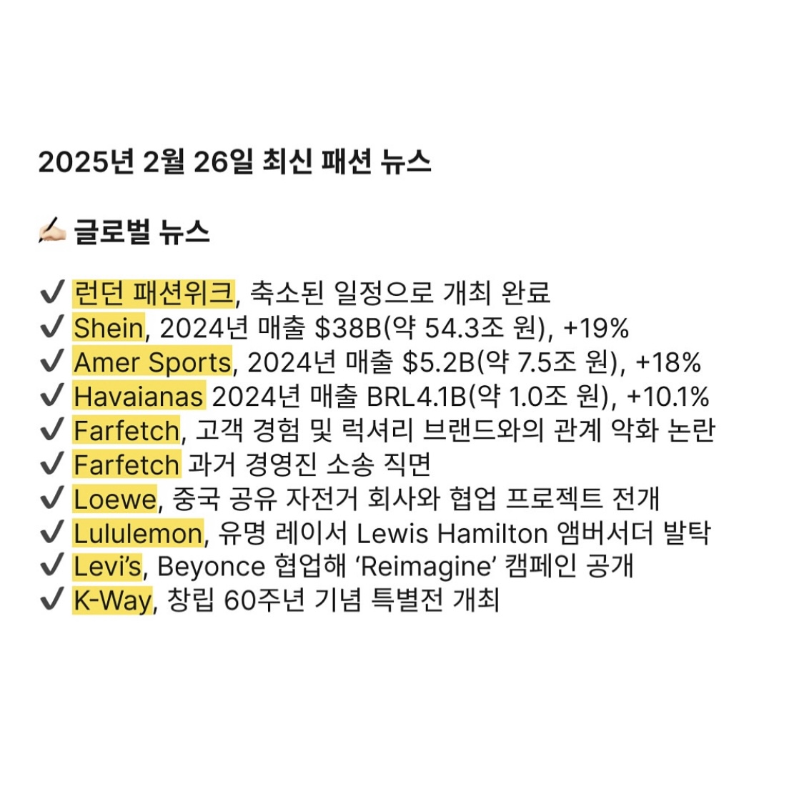 • Shein은 2024년 매출이 19% 신장한 $38B(약 54.3조 원)를 기록했습니다. 순익은 40% 하락한 $1B(약 1.4조 원)를 기록했습니다.