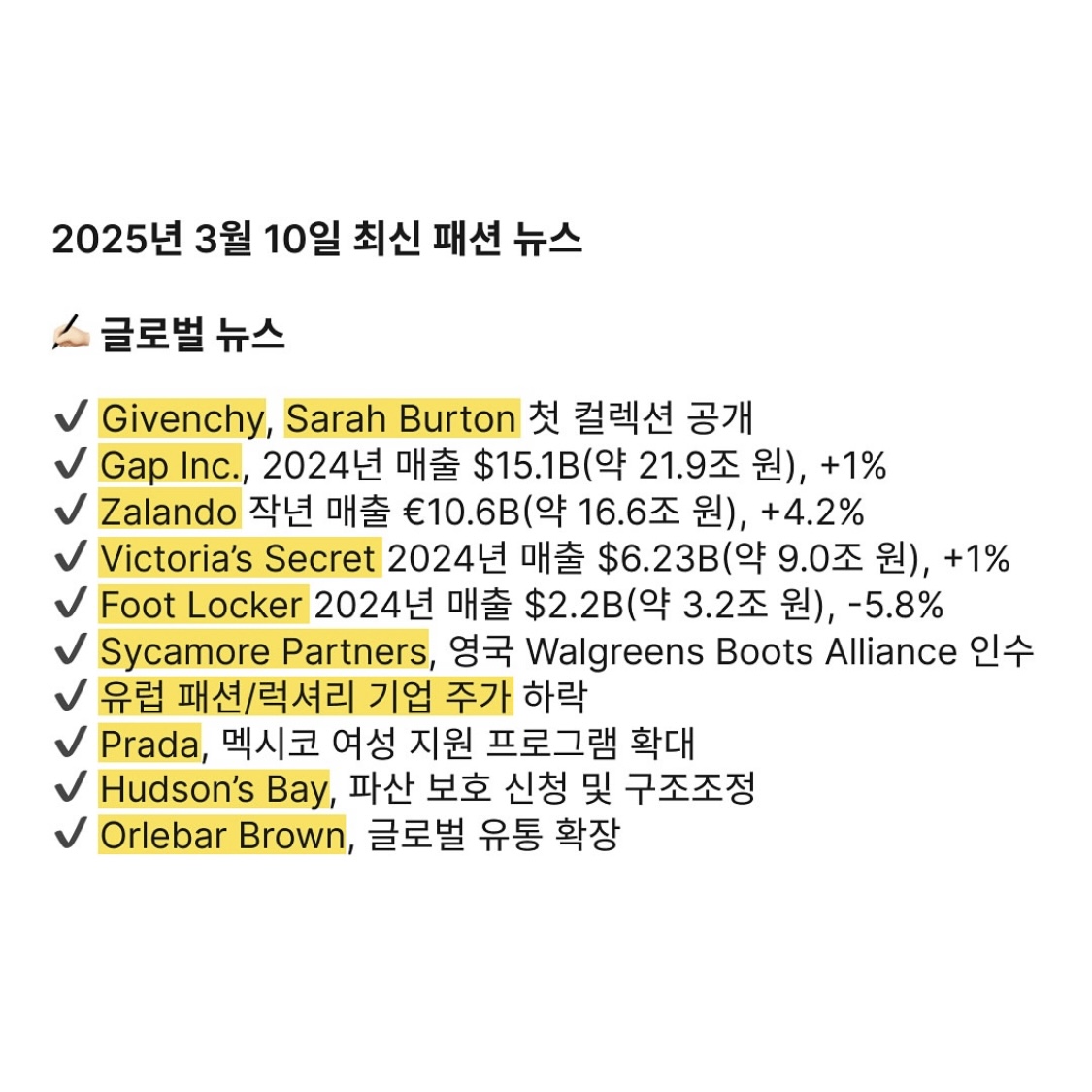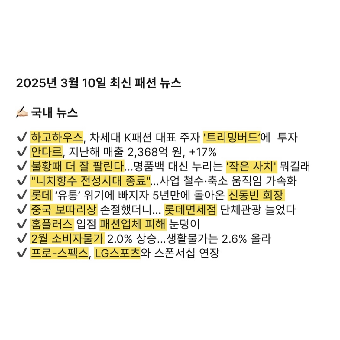 2025년 3월 10일 최신 패션 뉴스