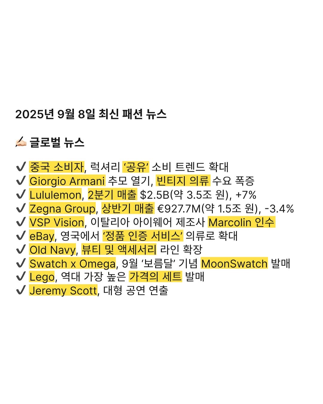 2025년 9월 8일 최신 패션 뉴스