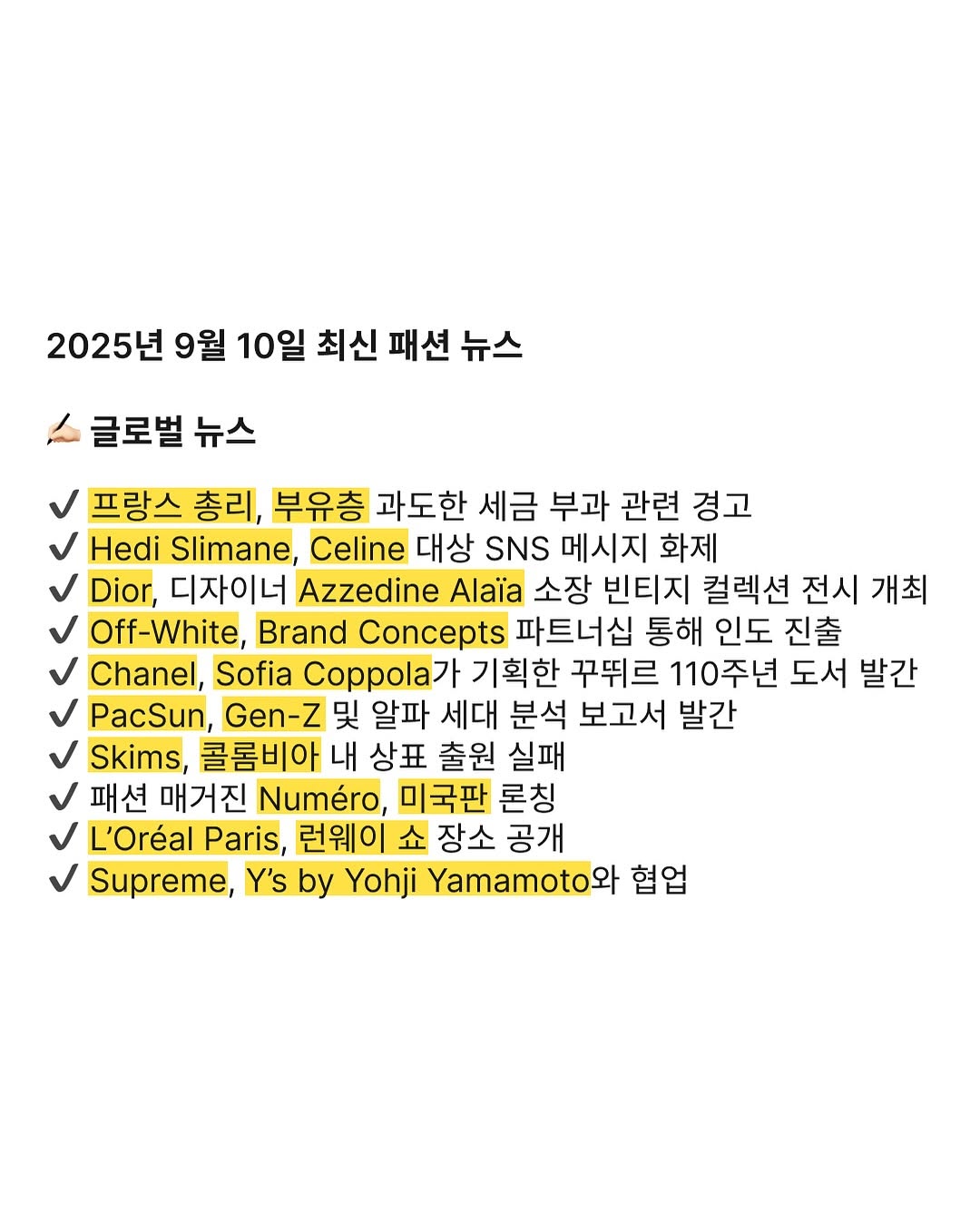 • Hedi Slimane이 Celine에게 “본인의 스타일에 더 이상 의존하지 말고 새로운 것을 보여줘라”는 내용의 SNS 메시지를 남겨 화제입니다.